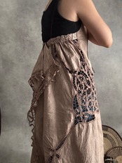 べんがら染めでモカブラウンのようなお色味に染まっており、肩紐の濃いブラウンが全体を引き締めてくれています!