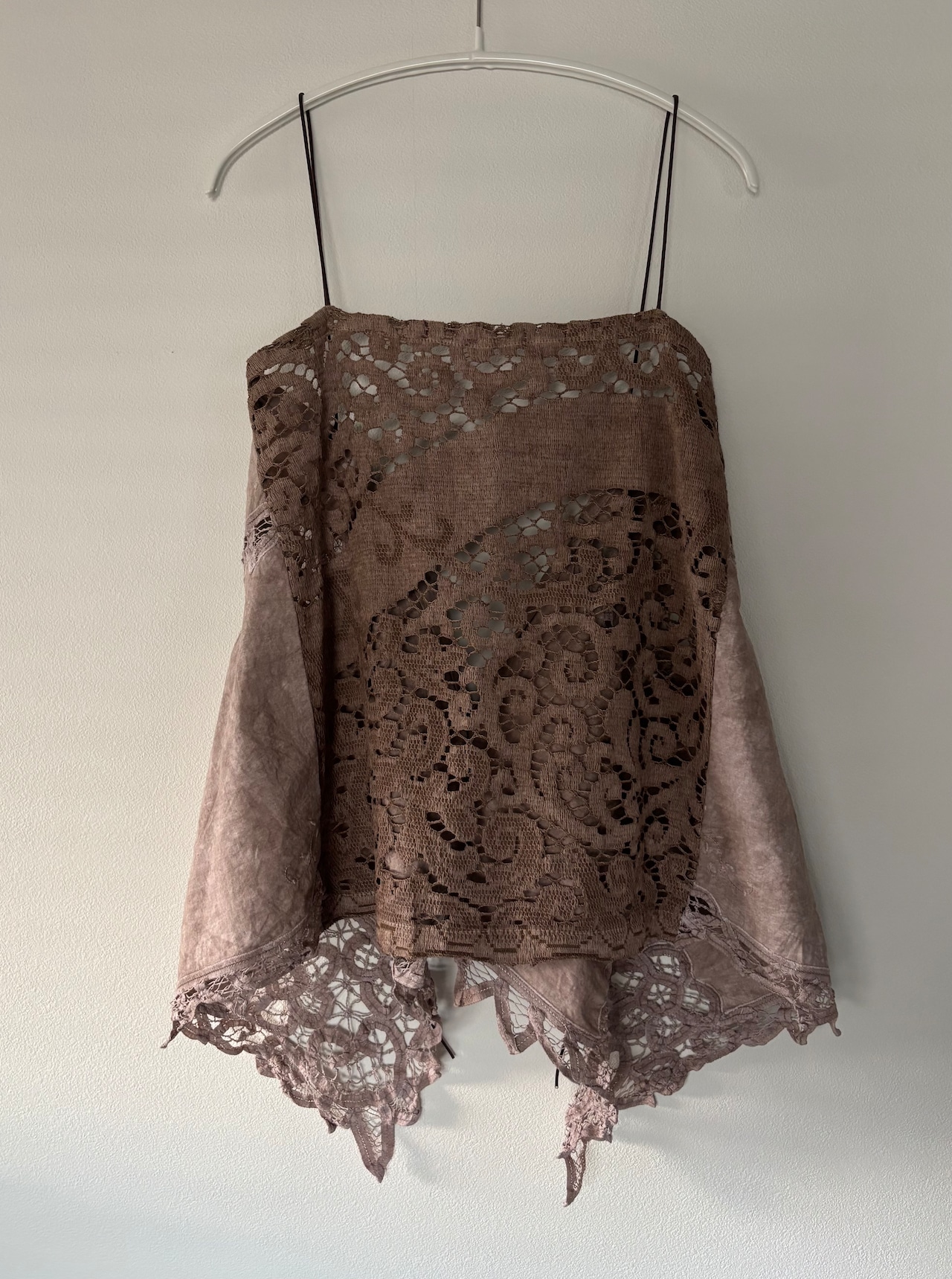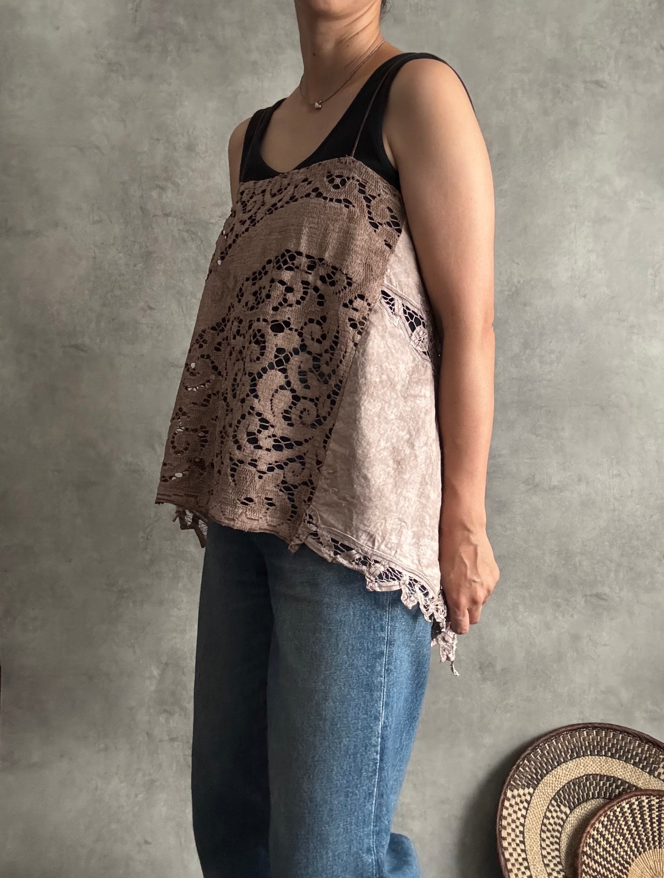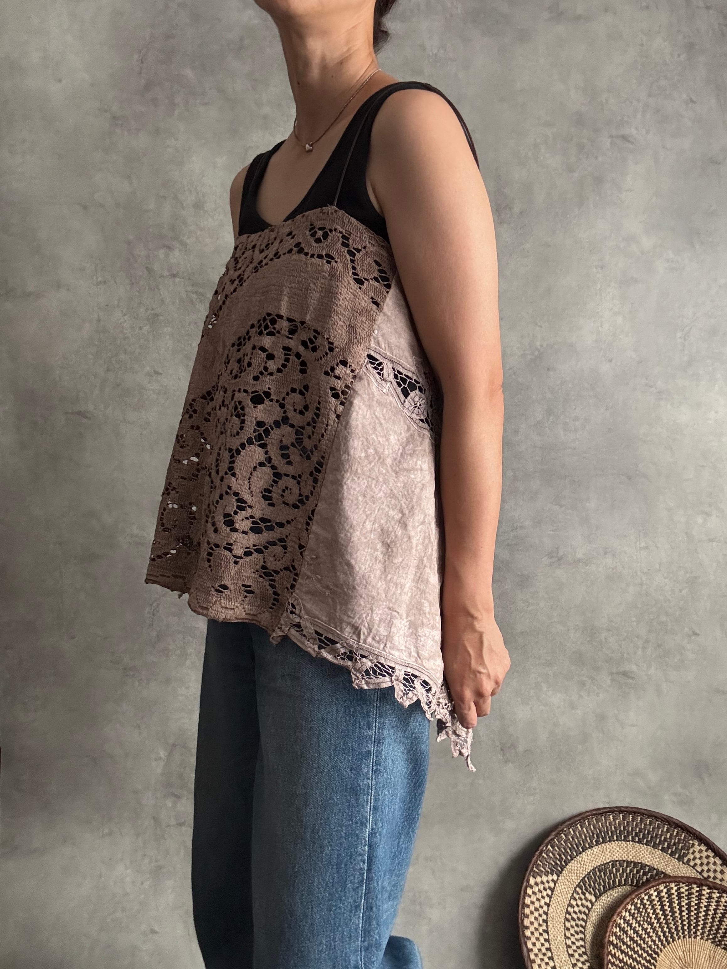 バテンレースとノッティンガムレースのブラウンキャミソール