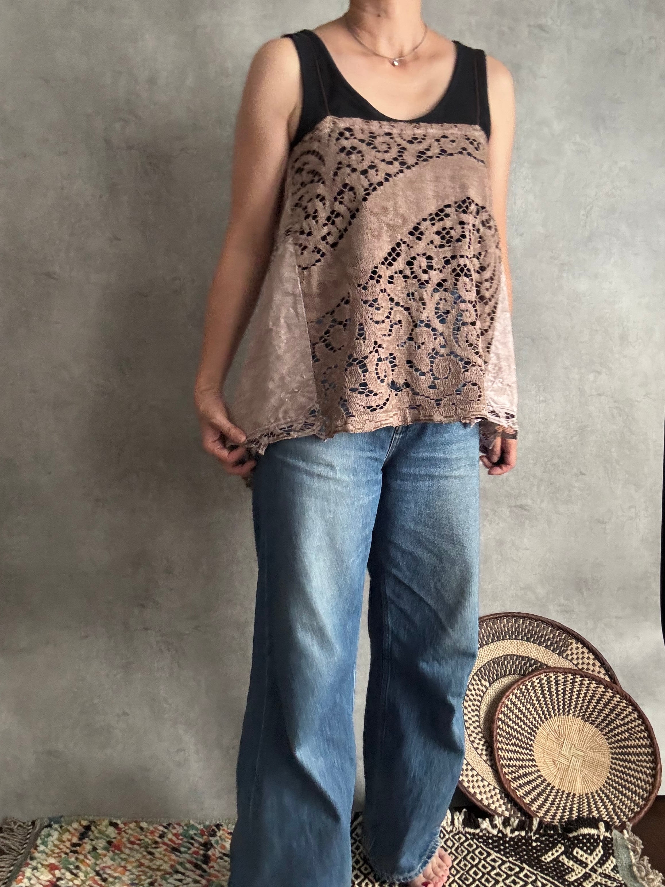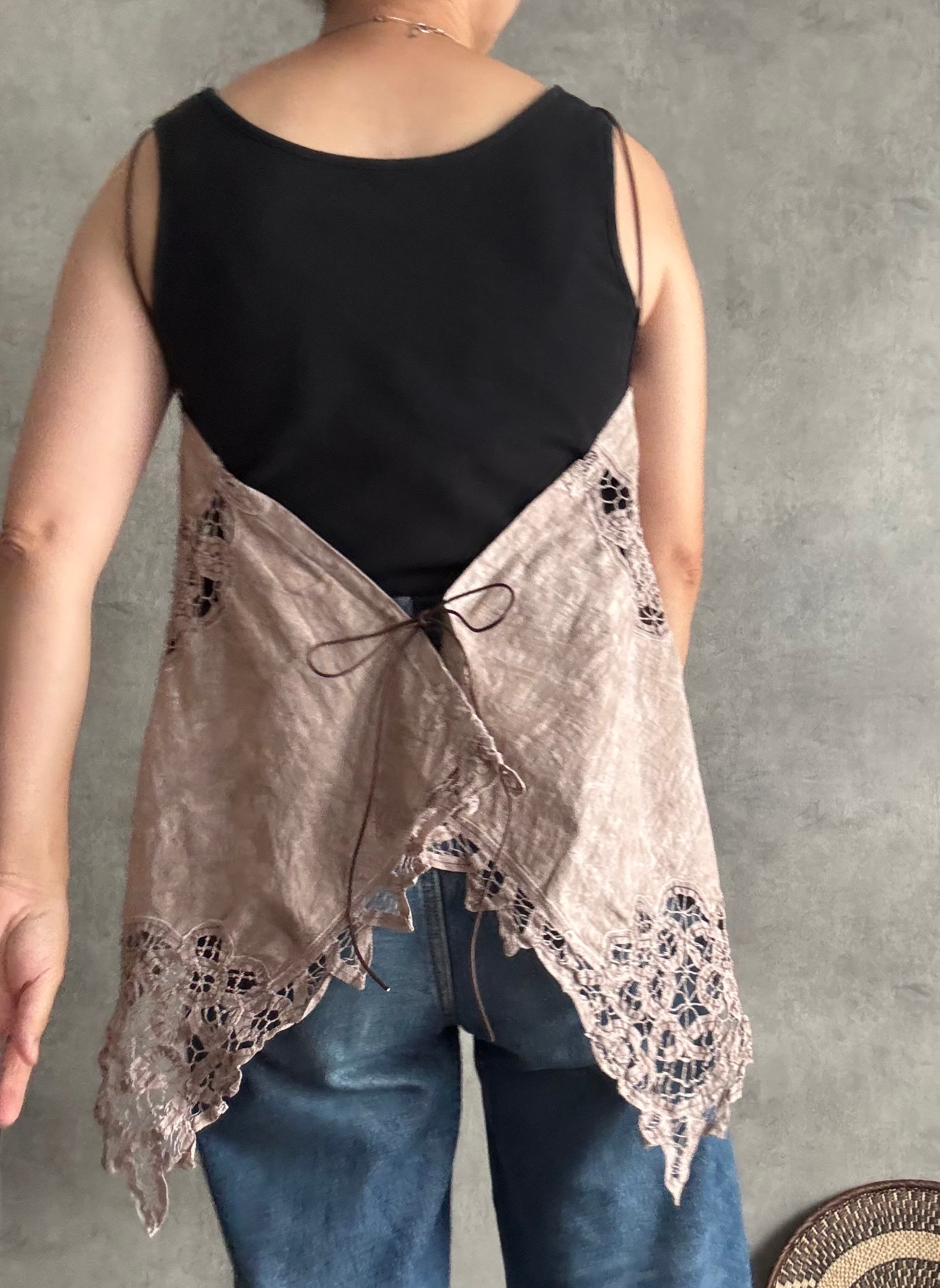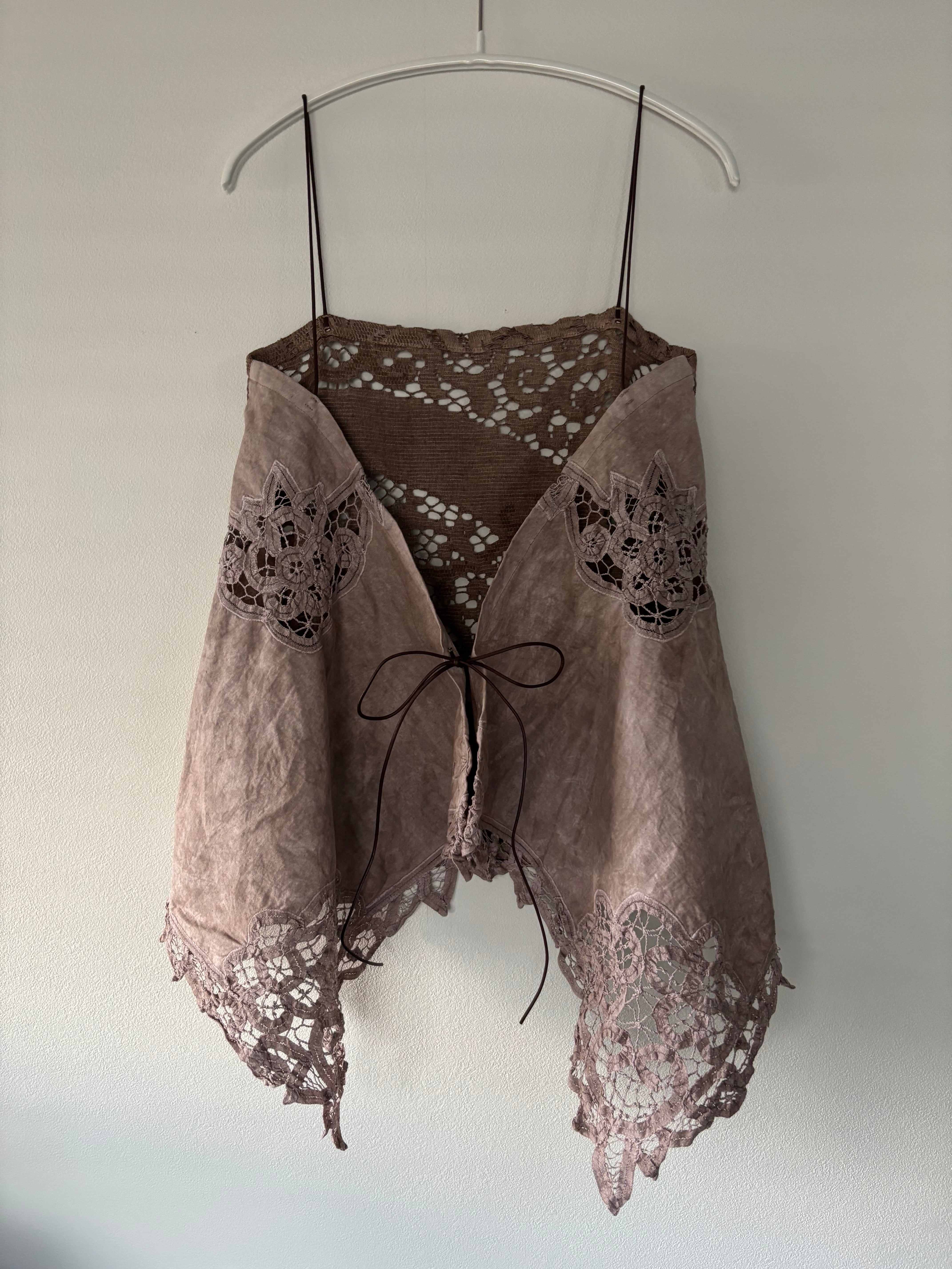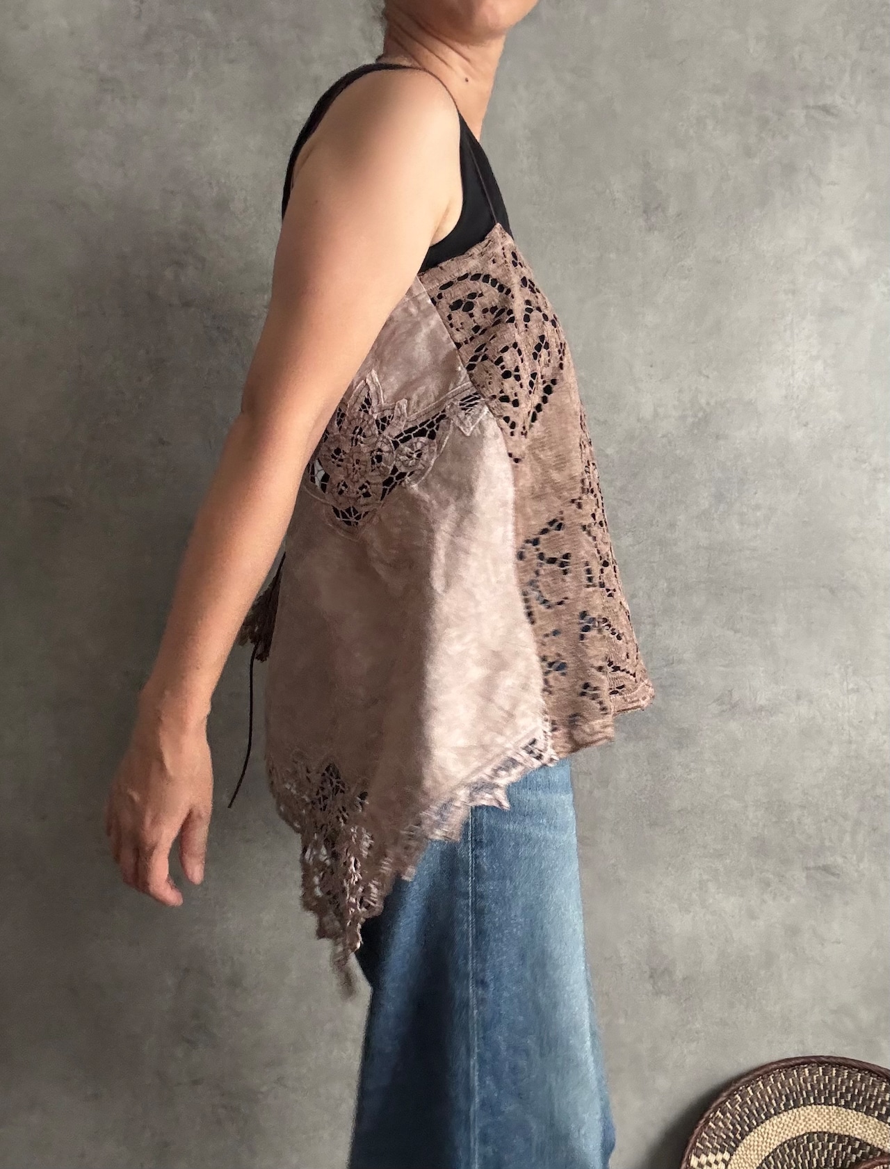 バテンレースとノッティンガムレースのブラウンキャミソール