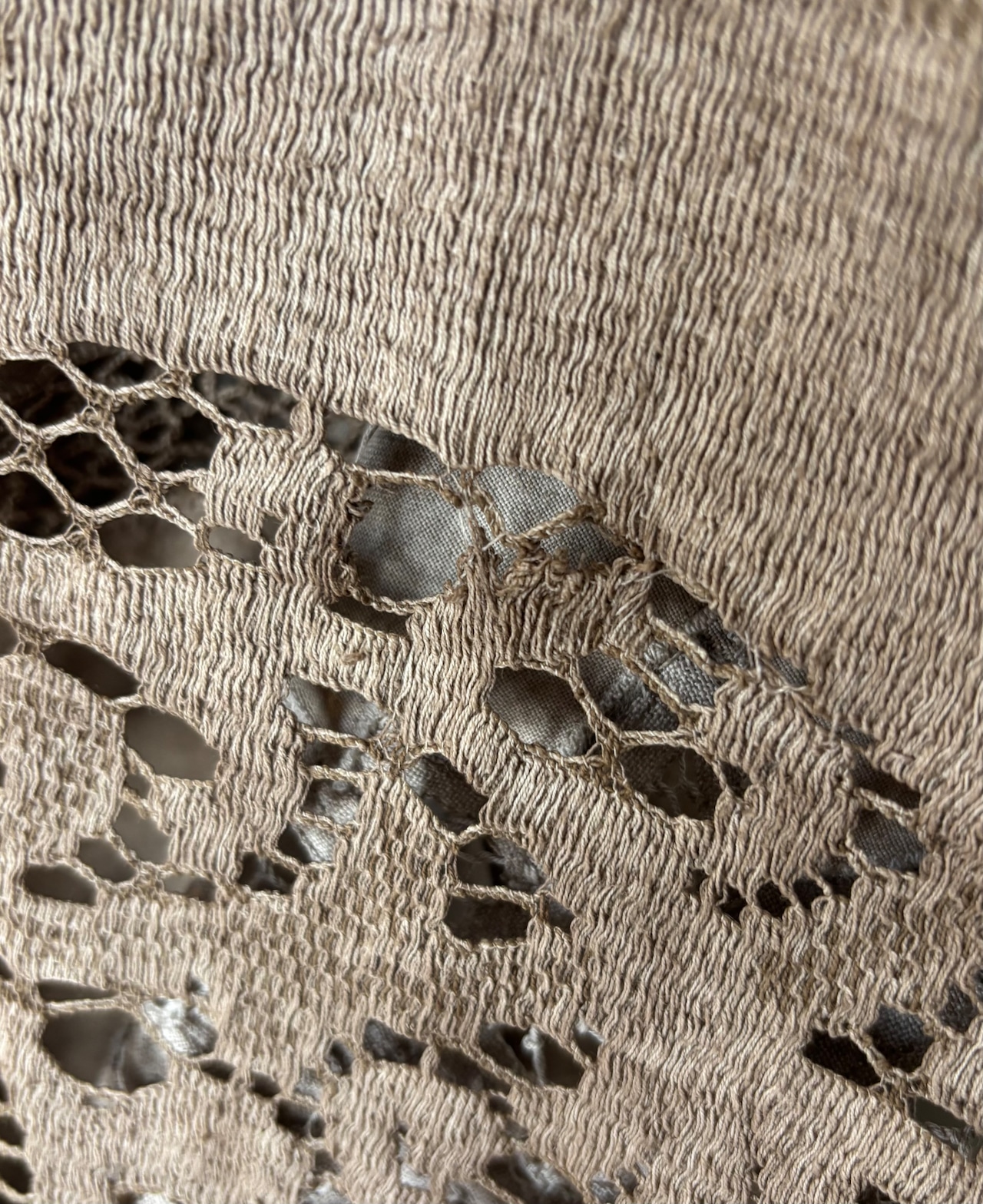 ※こちらのクロスは2ヶ所ほど糸が切れて破れのような状態があったので、ほつれ止めと手縫いで補修しております。