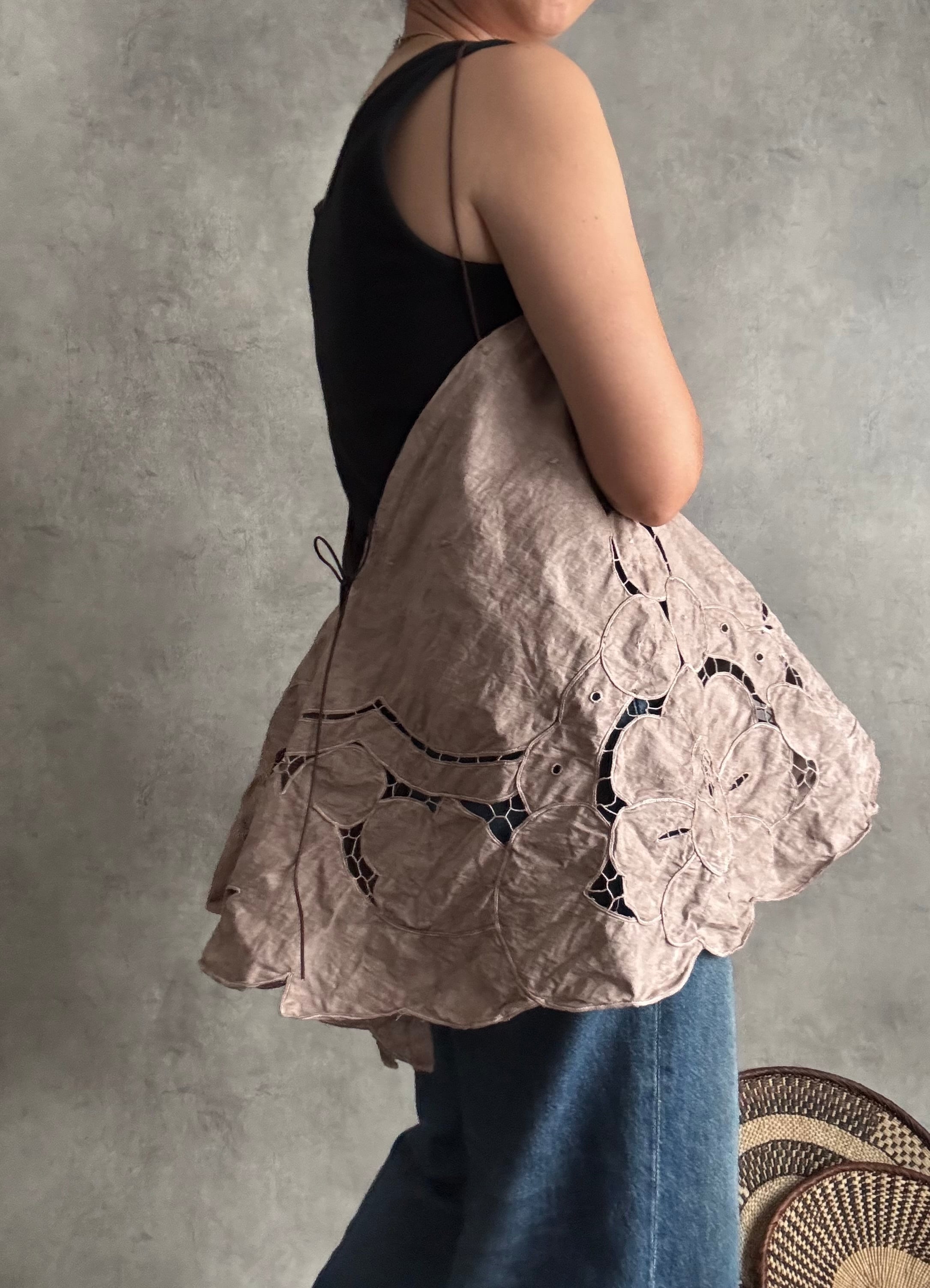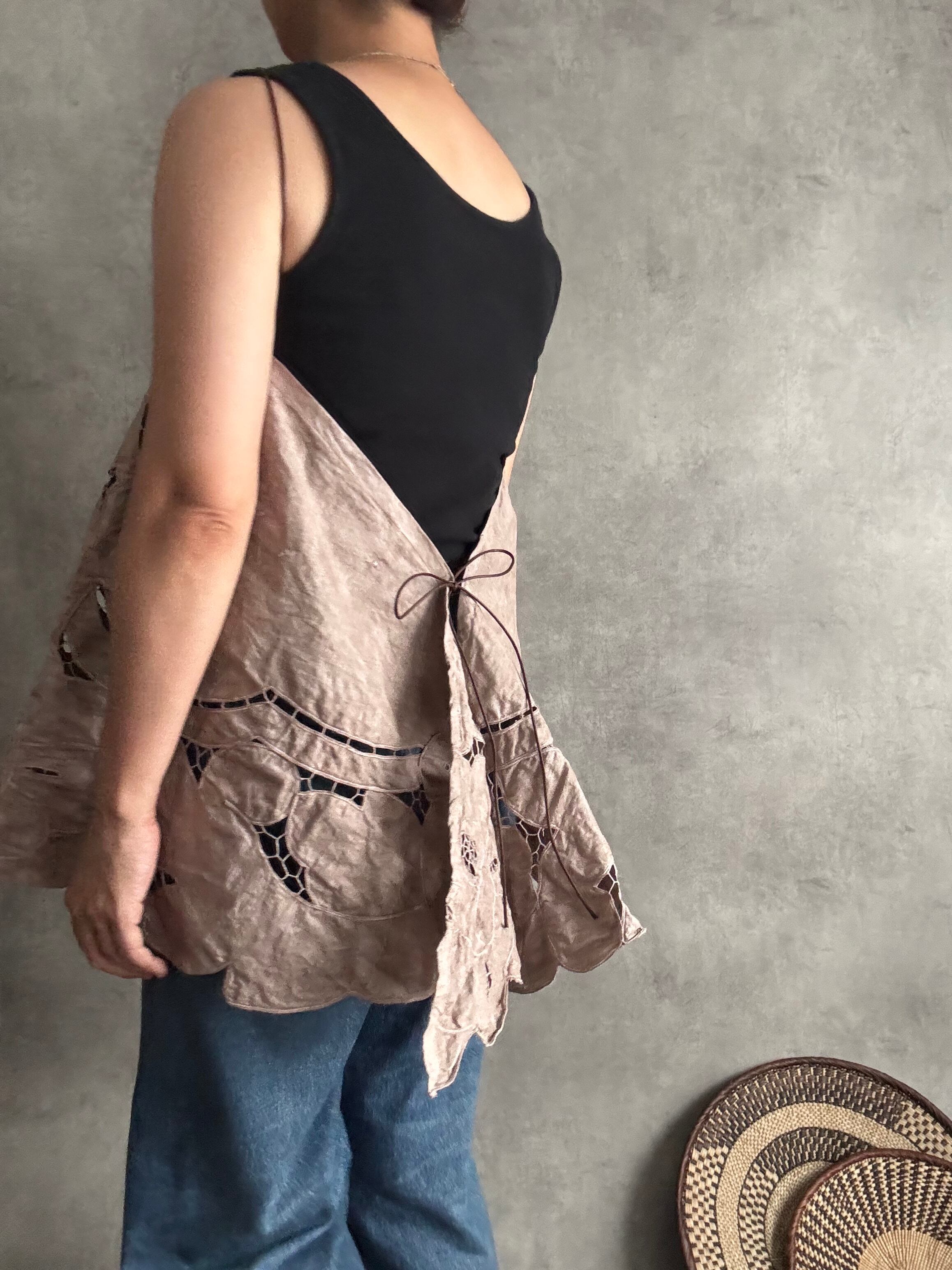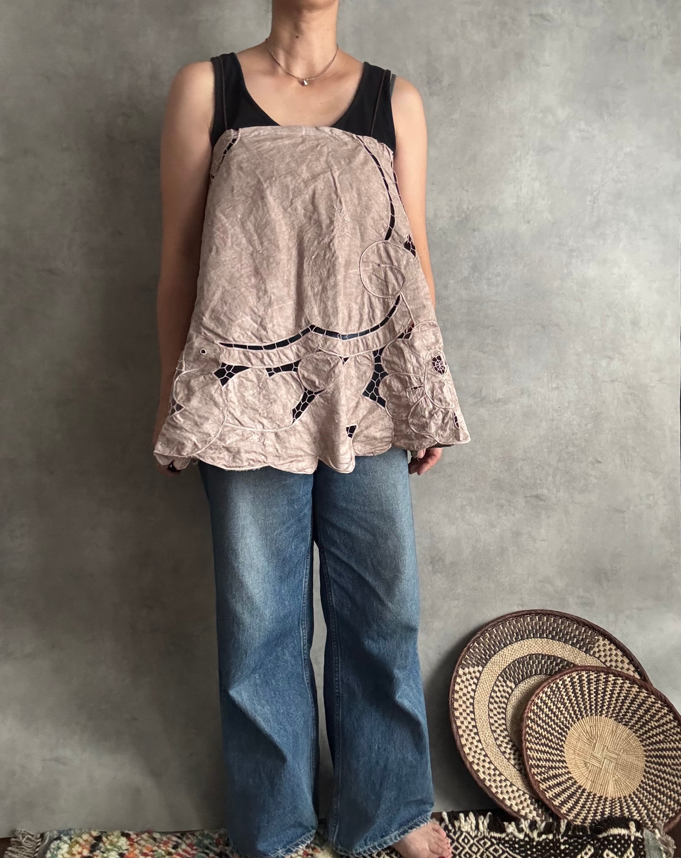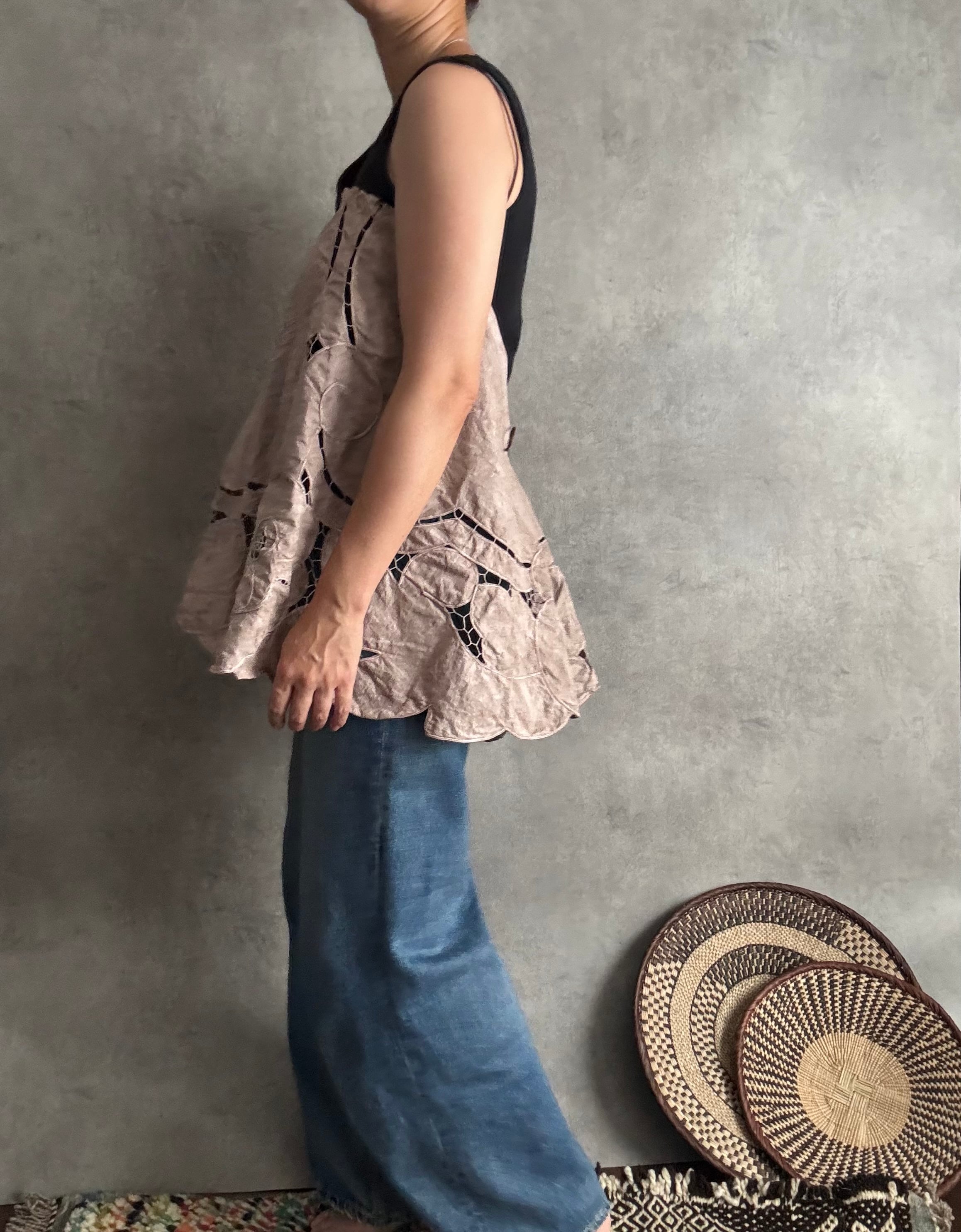 以前お作りした朝影ワンピースの残り布がきれいにラウンド型だったのでキャミに仕立てました!