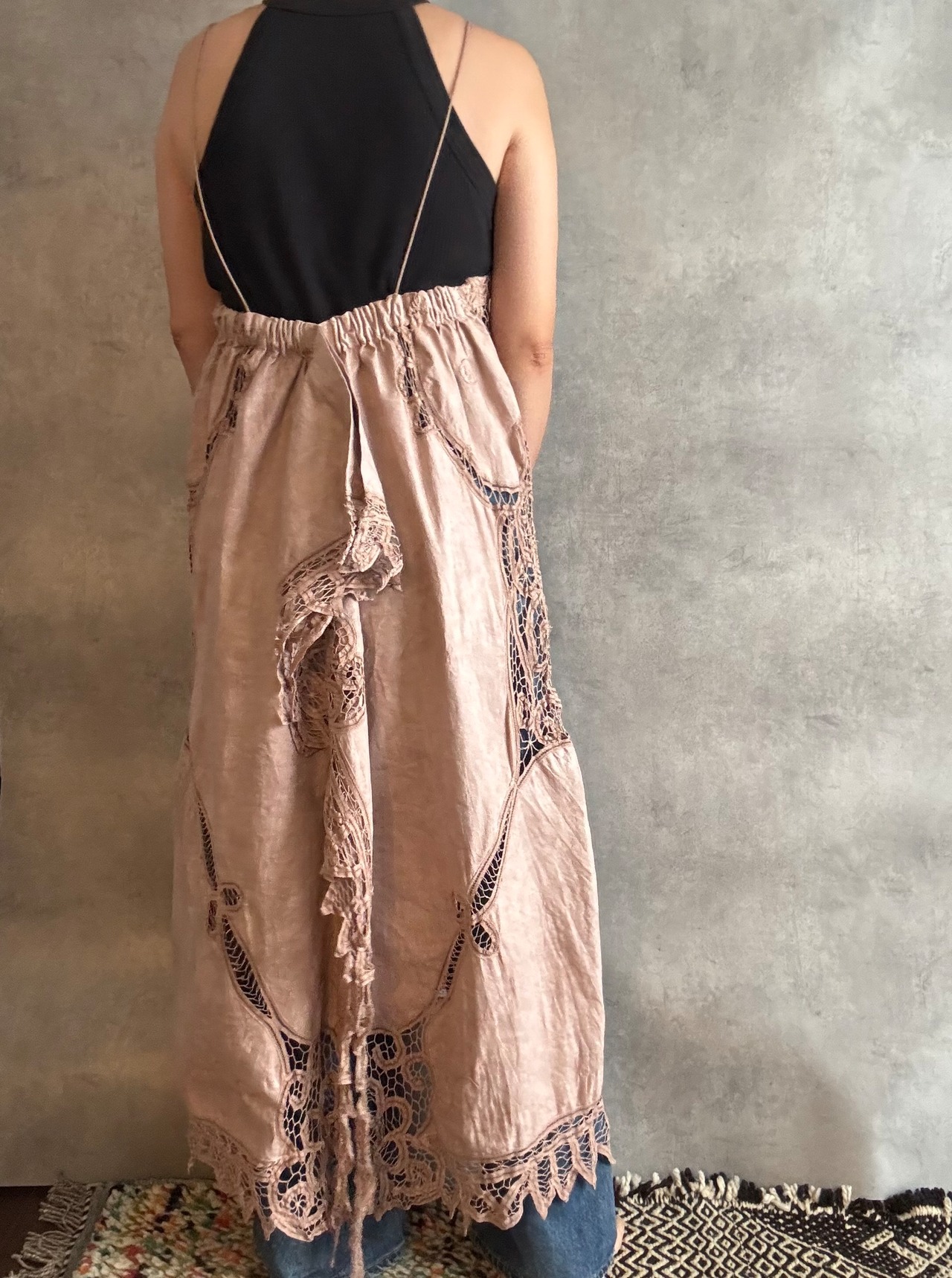 前身頃から後ろ身頃にかけてと、フチにもたっぷりと使用されています。