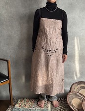 元は白地にグレージュのような刺繍の入ったリネン生地。