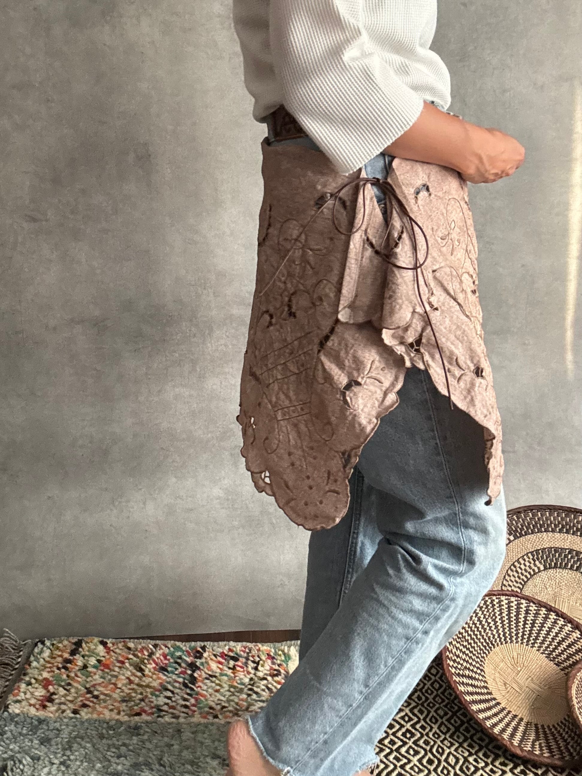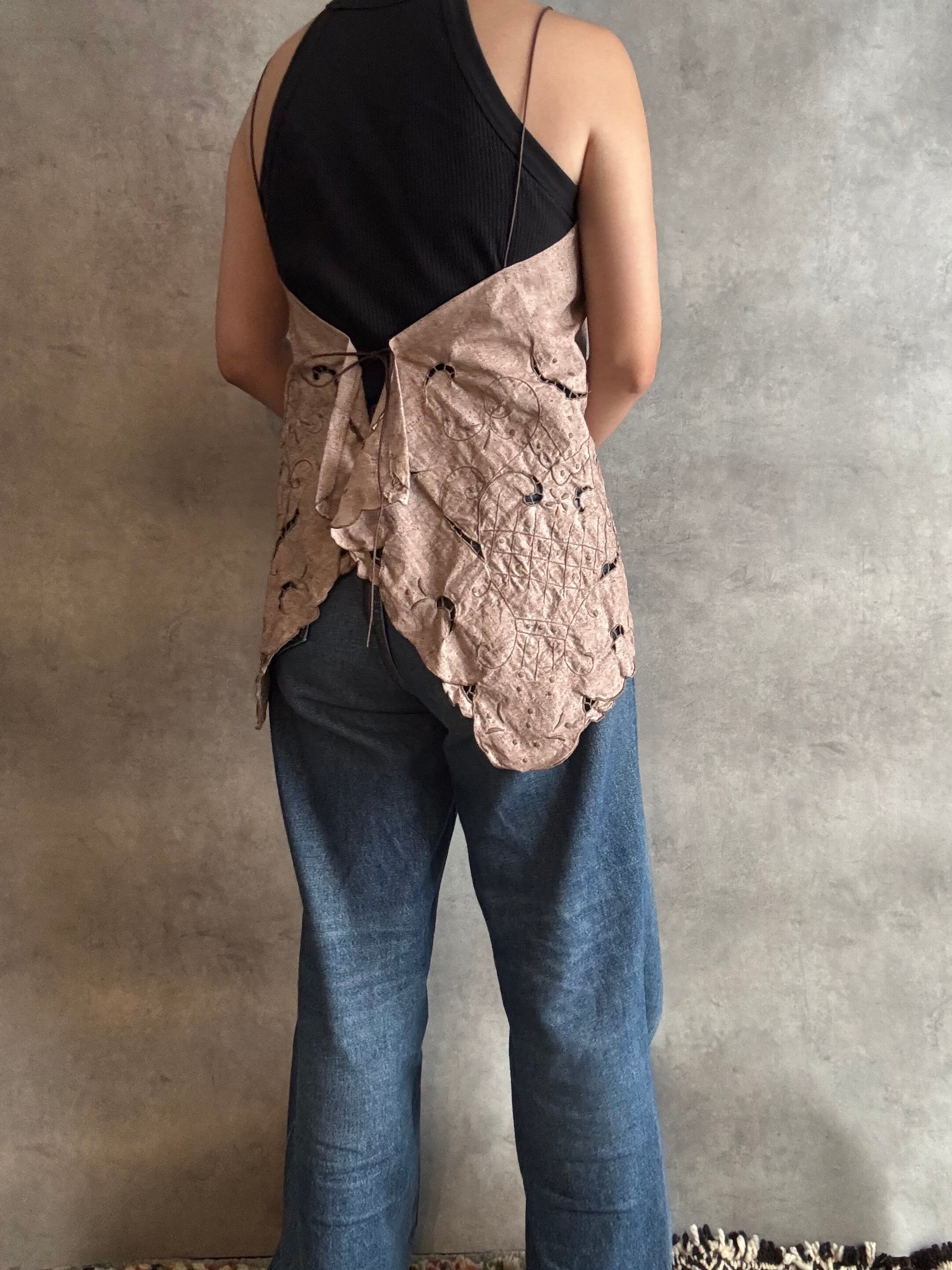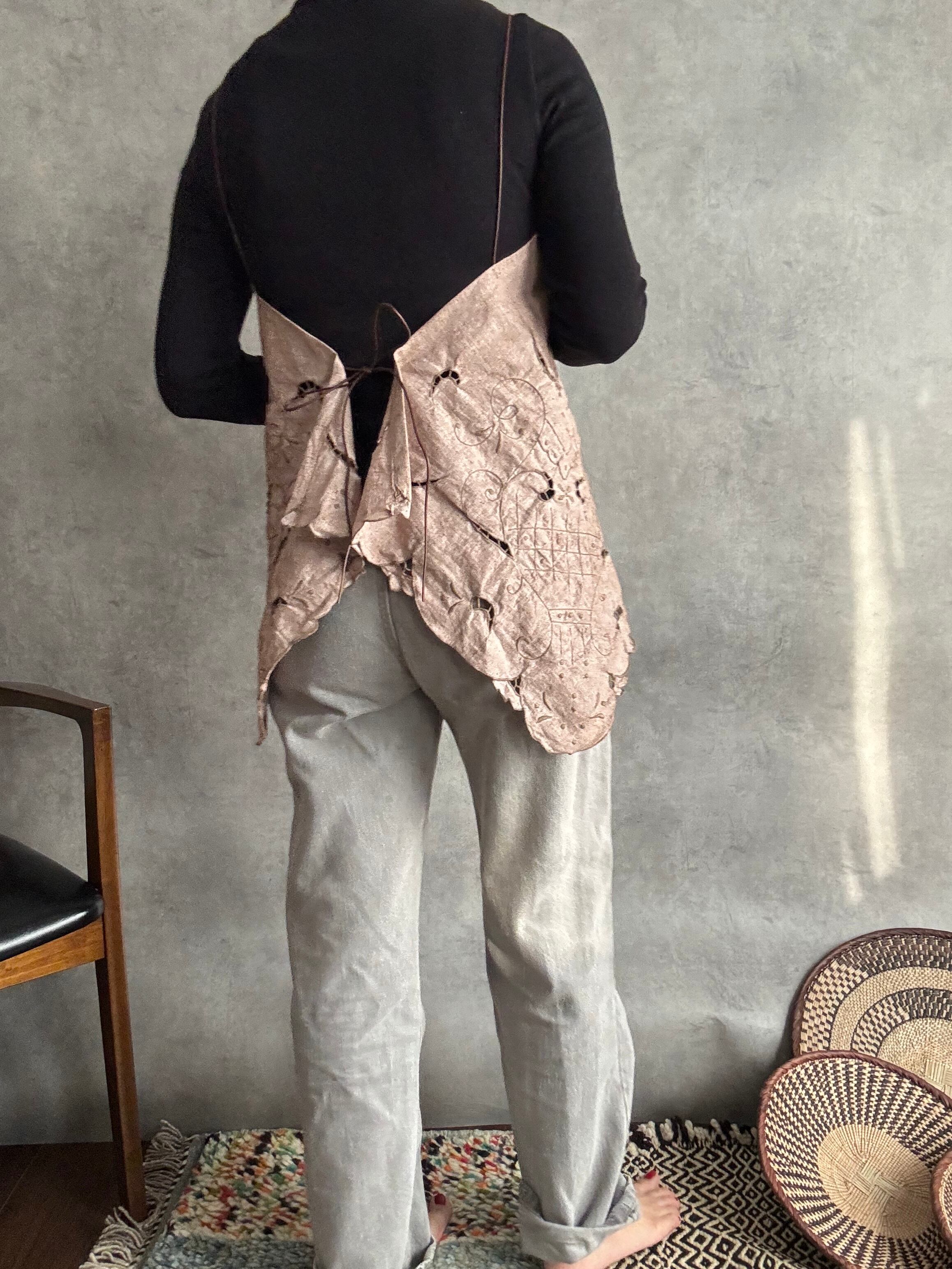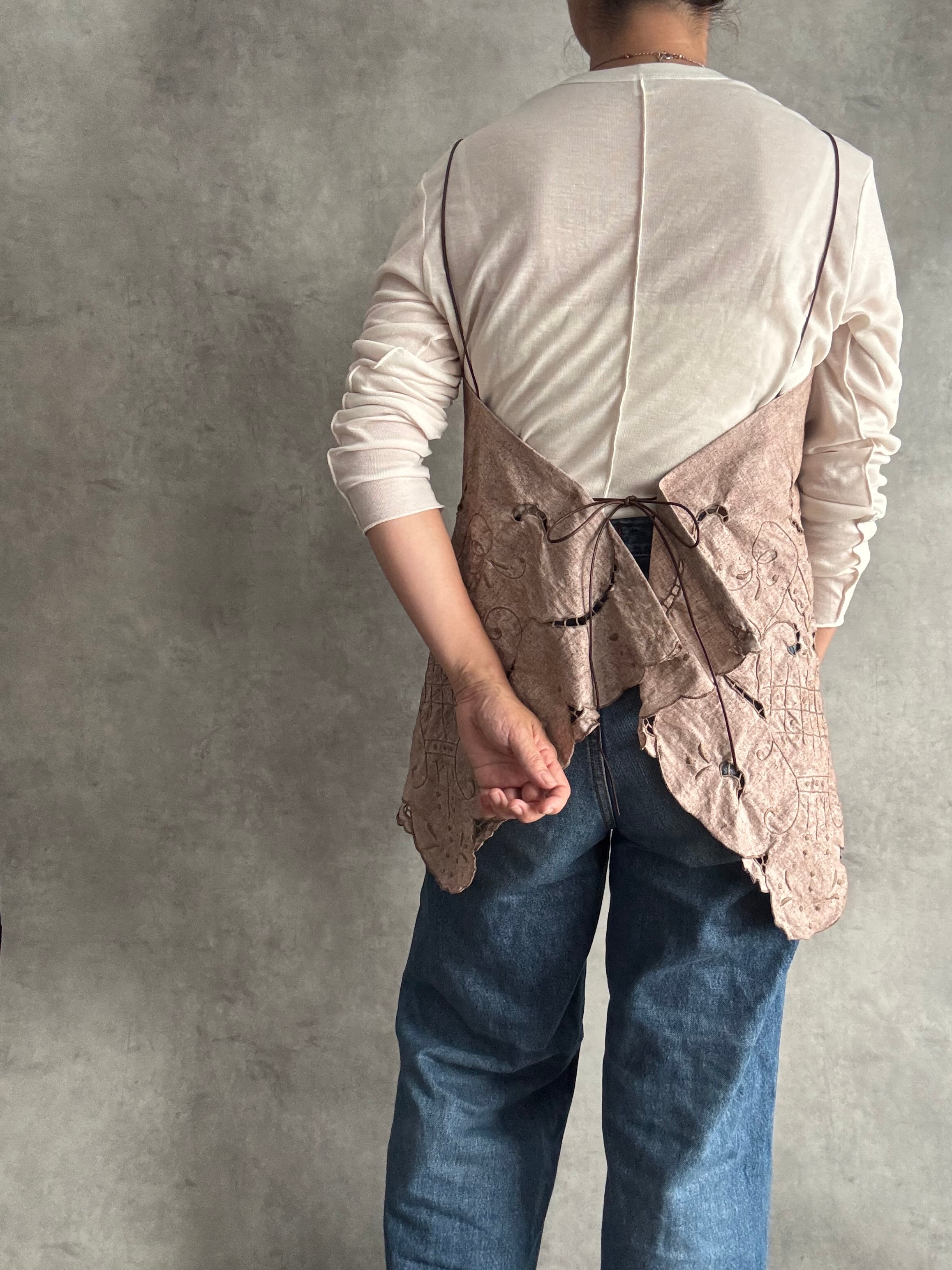 花刺繍レースとリネンの刺繍キャミソール ブラウン