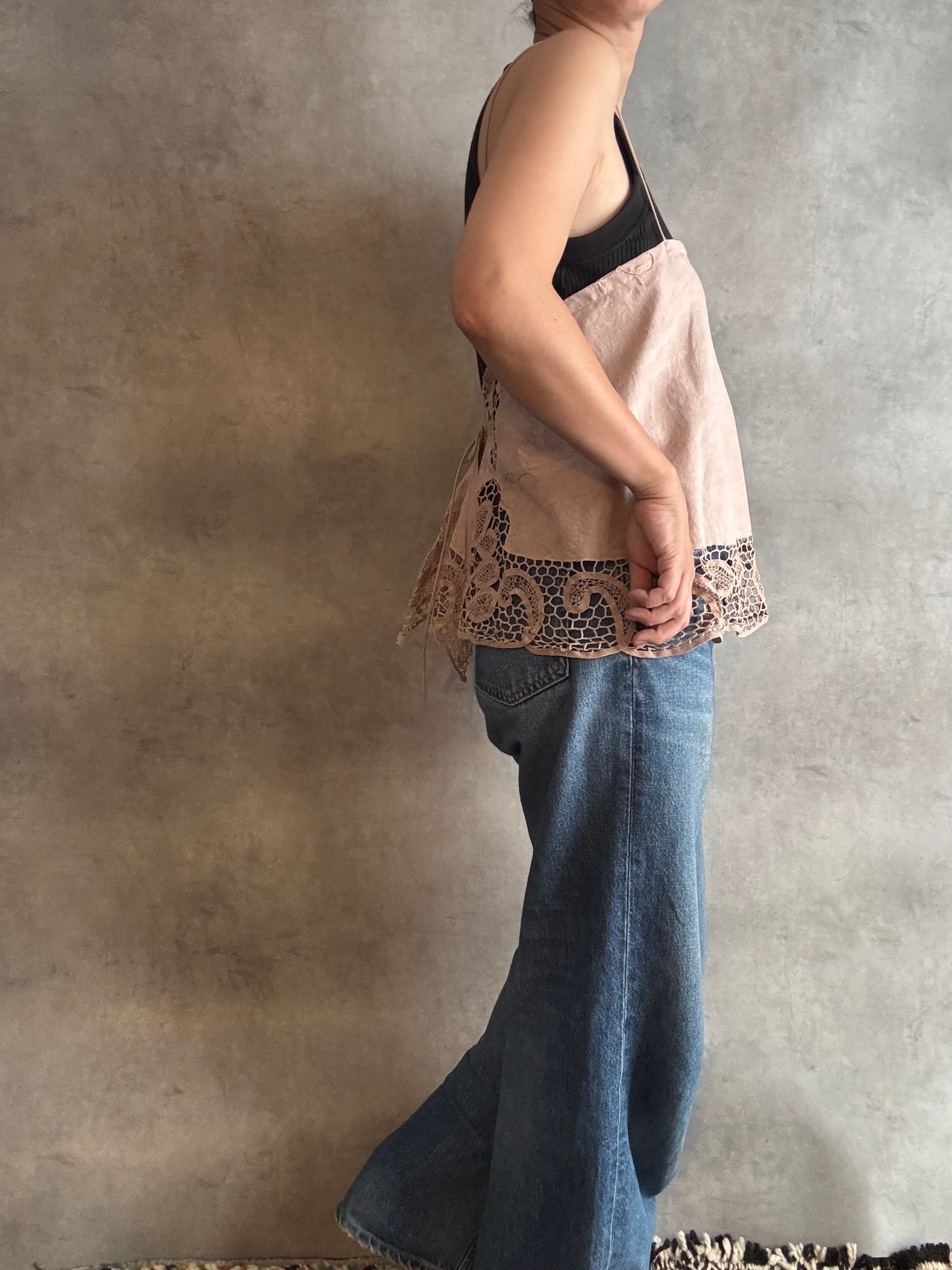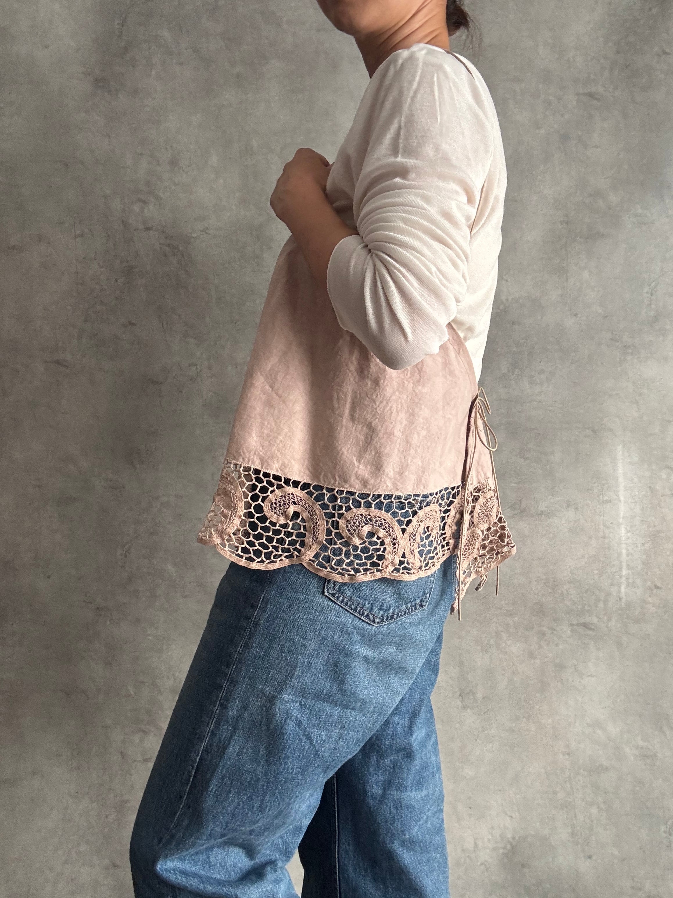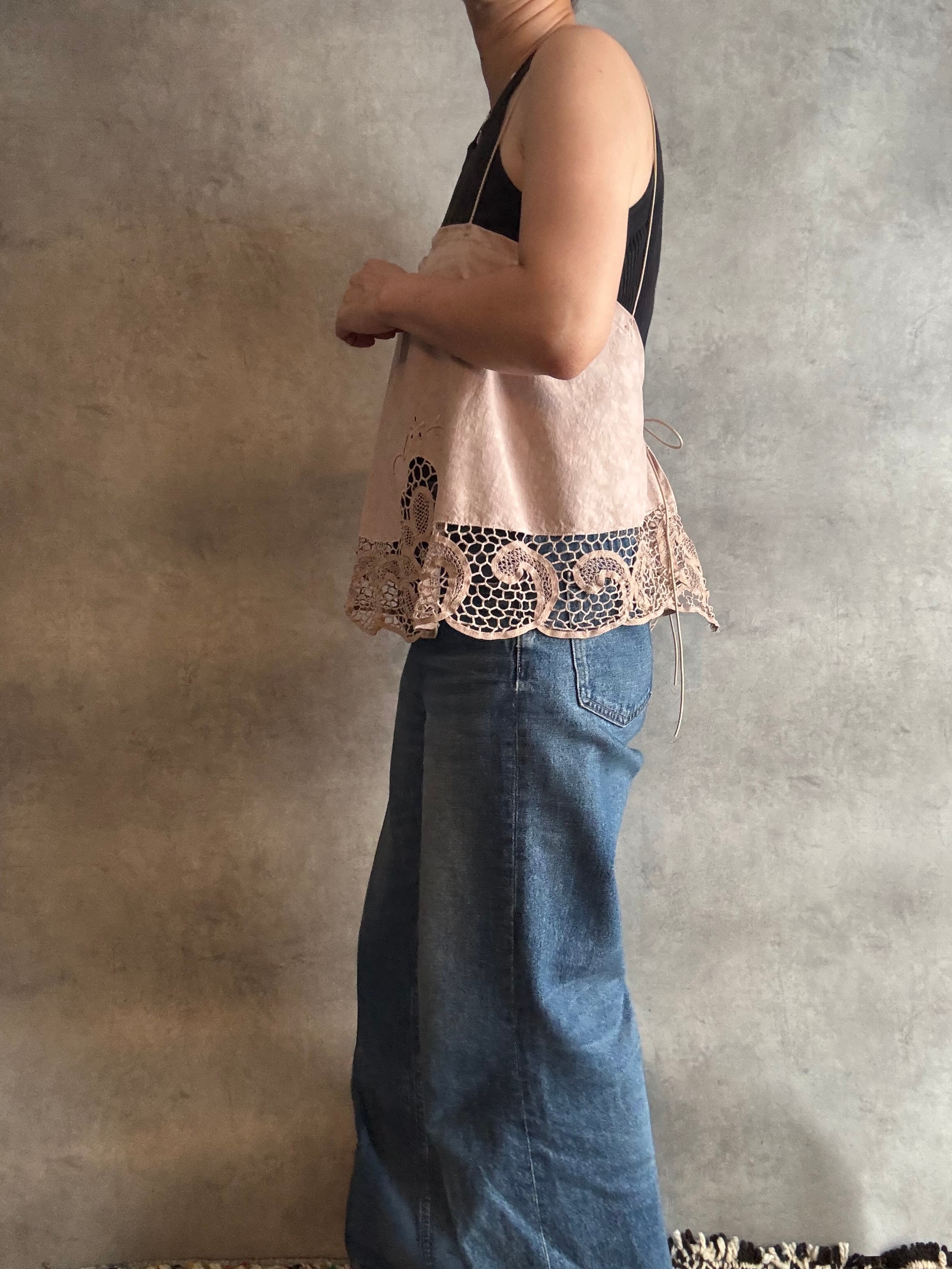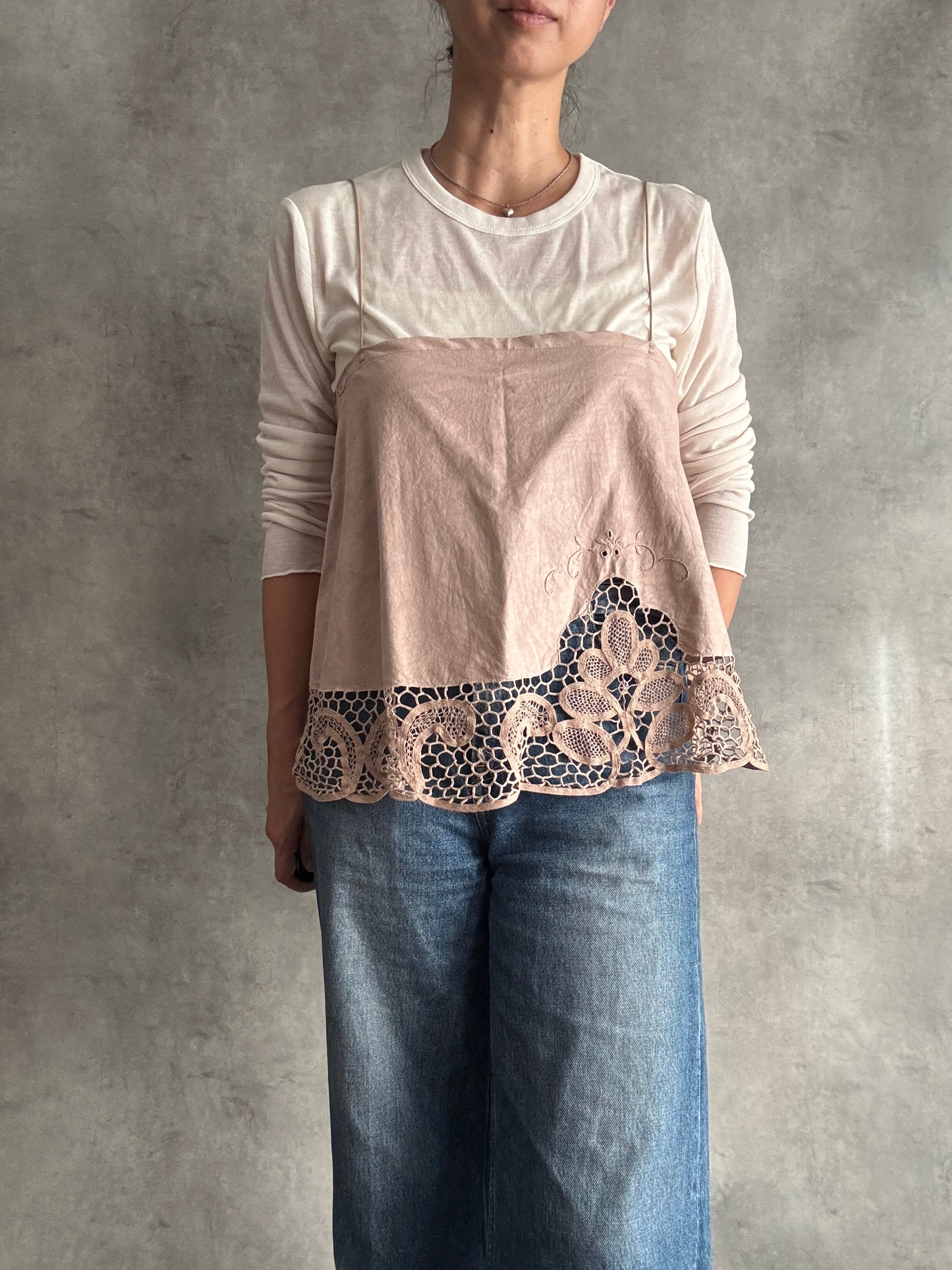 コード刺繍レースのラウンドキャミソール ピンク
