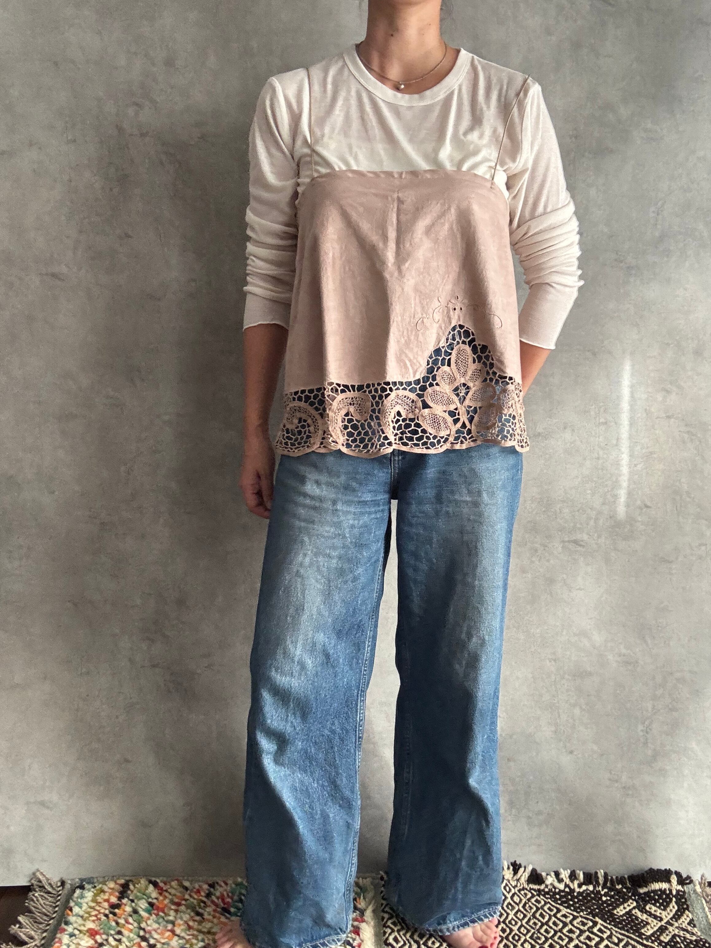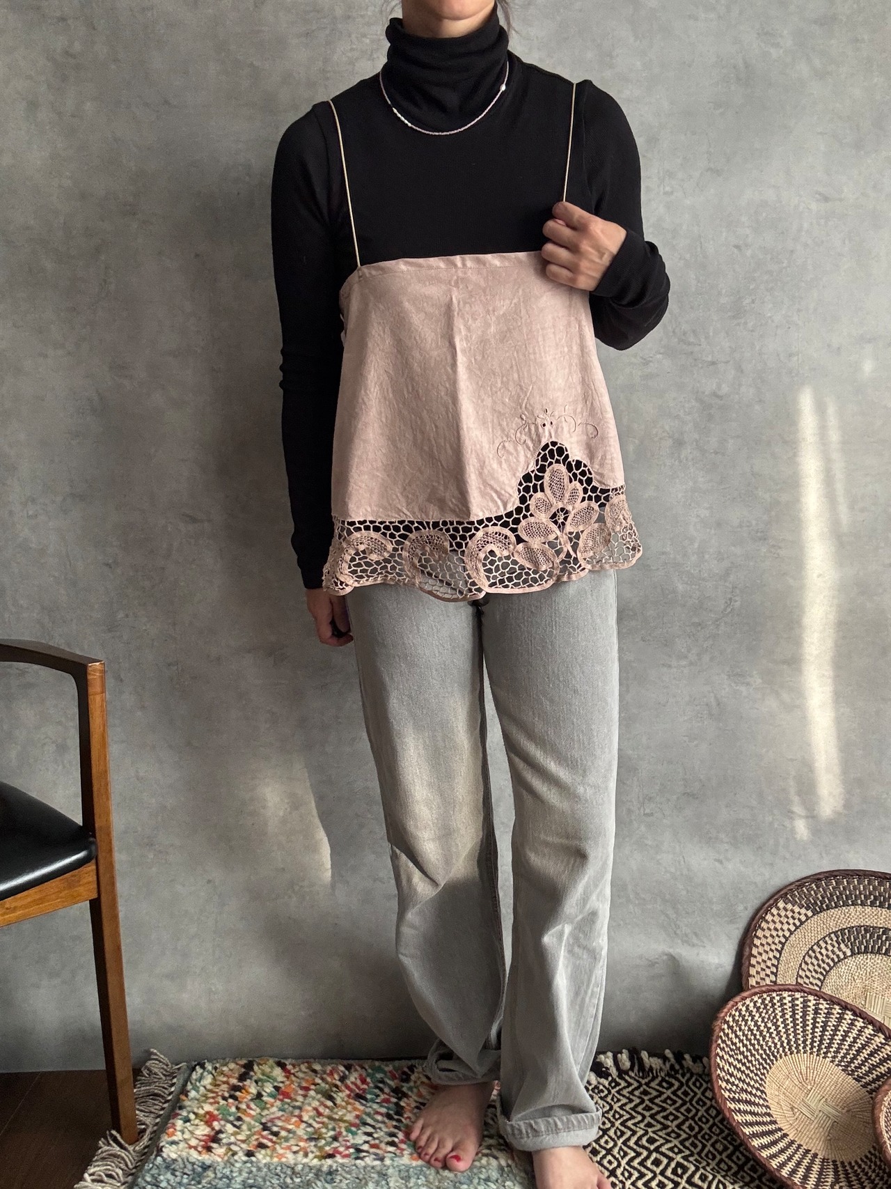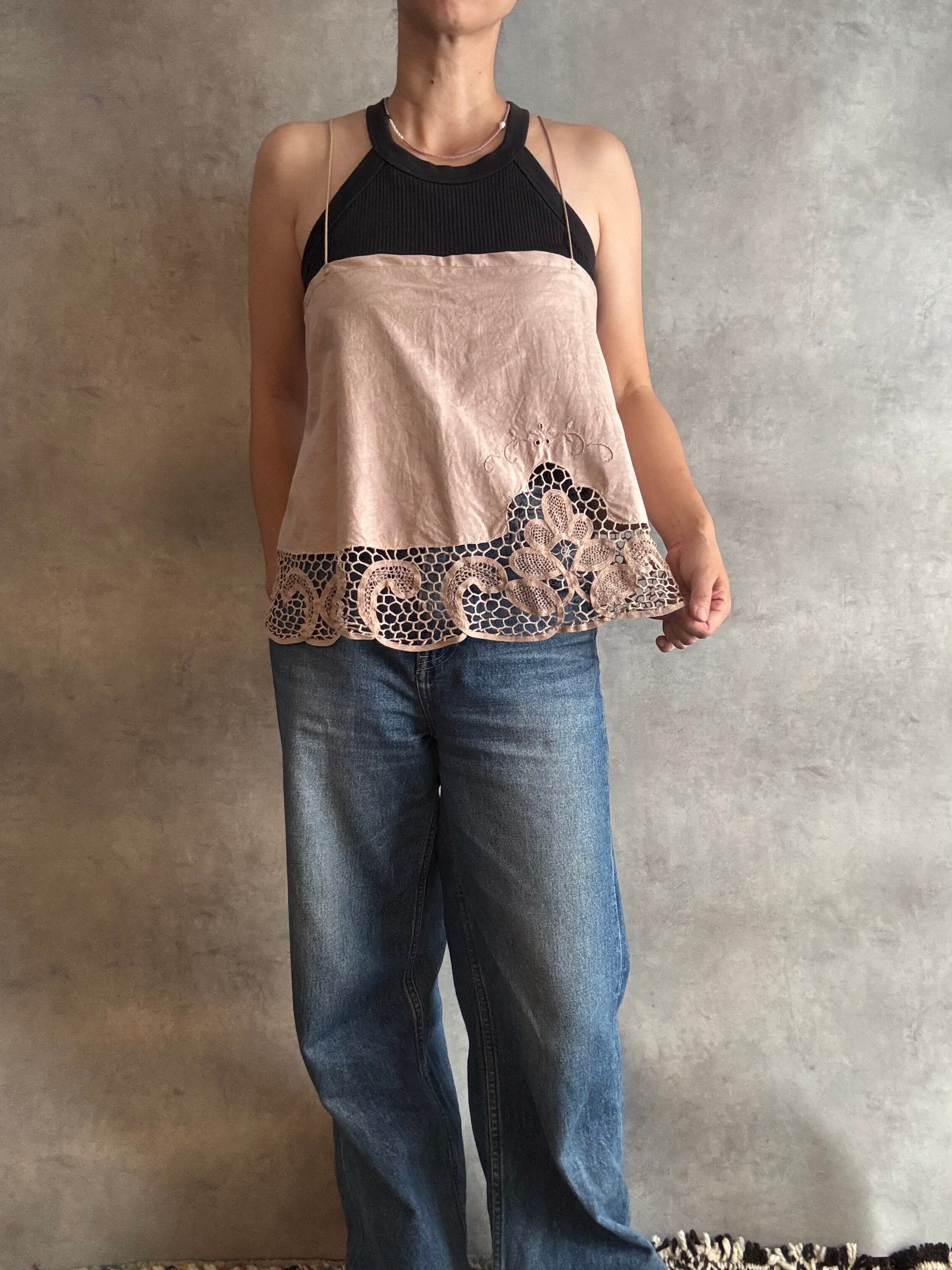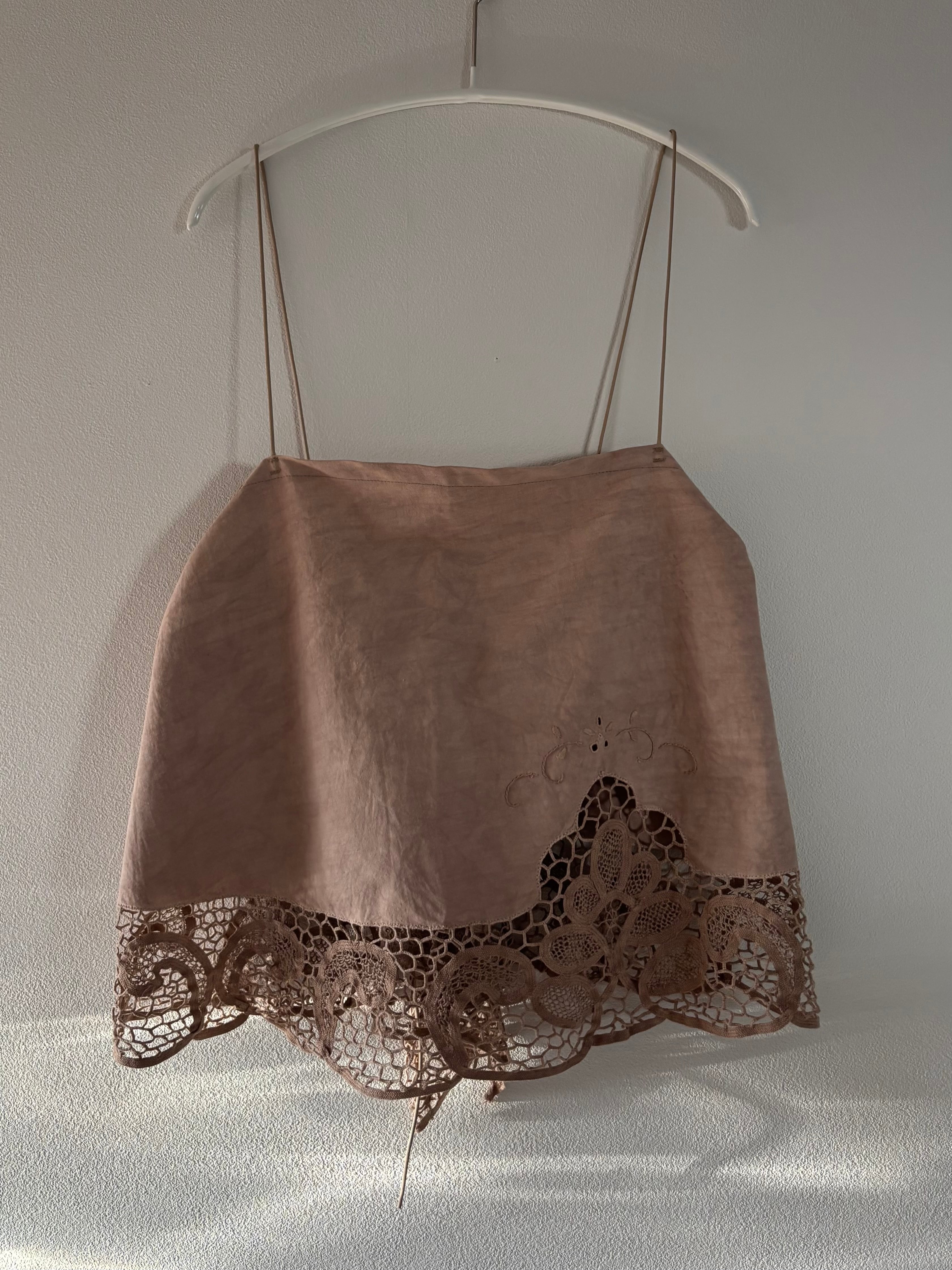 コード刺繍レースのラウンドキャミソール ピンク