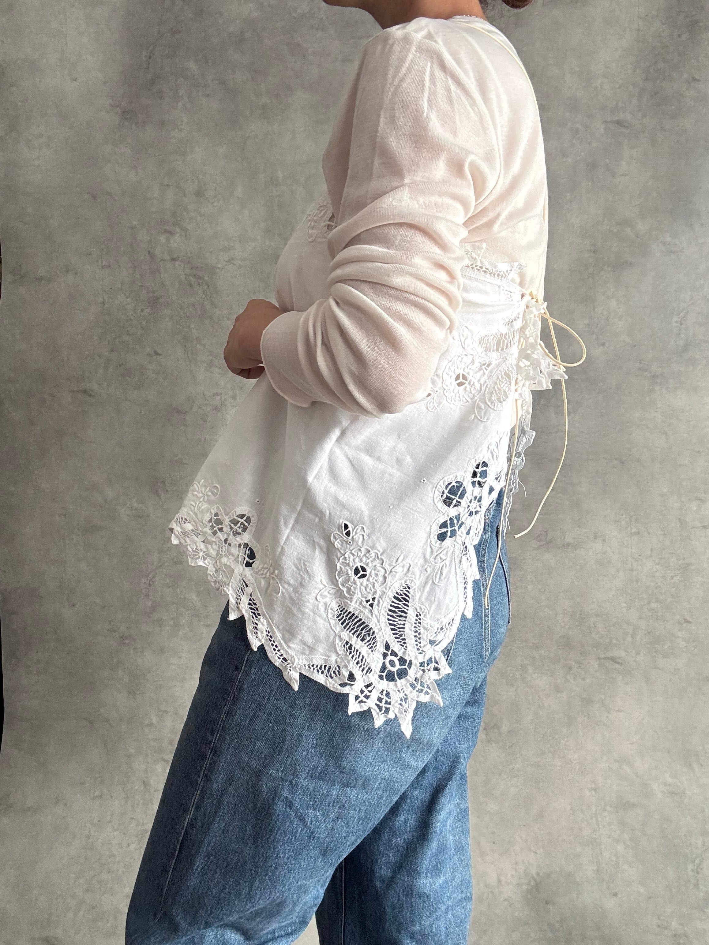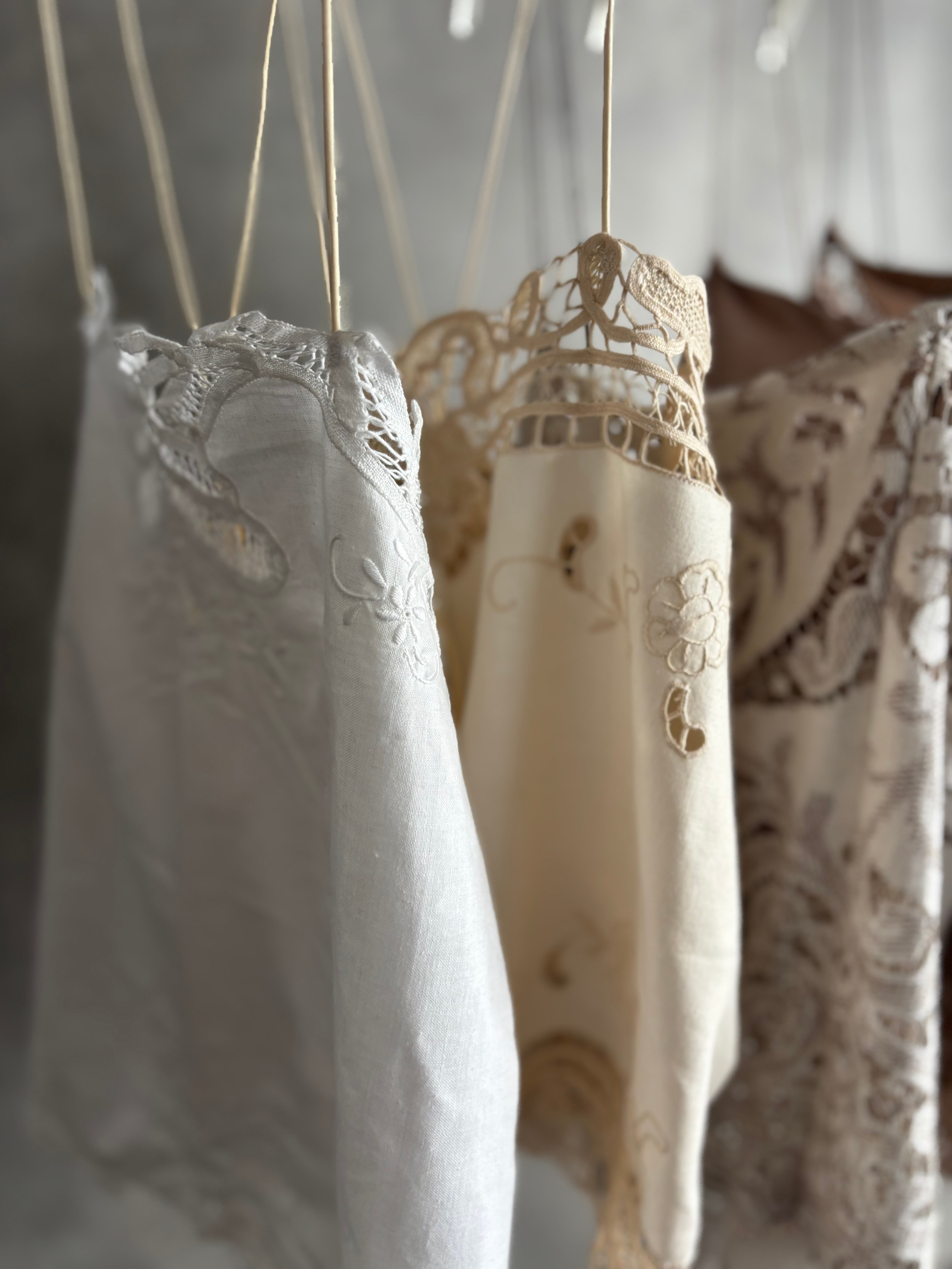 真っ白で繊細な刺繍とバテンレースが美しい小さめのクロスを贅沢に1枚使用しました!