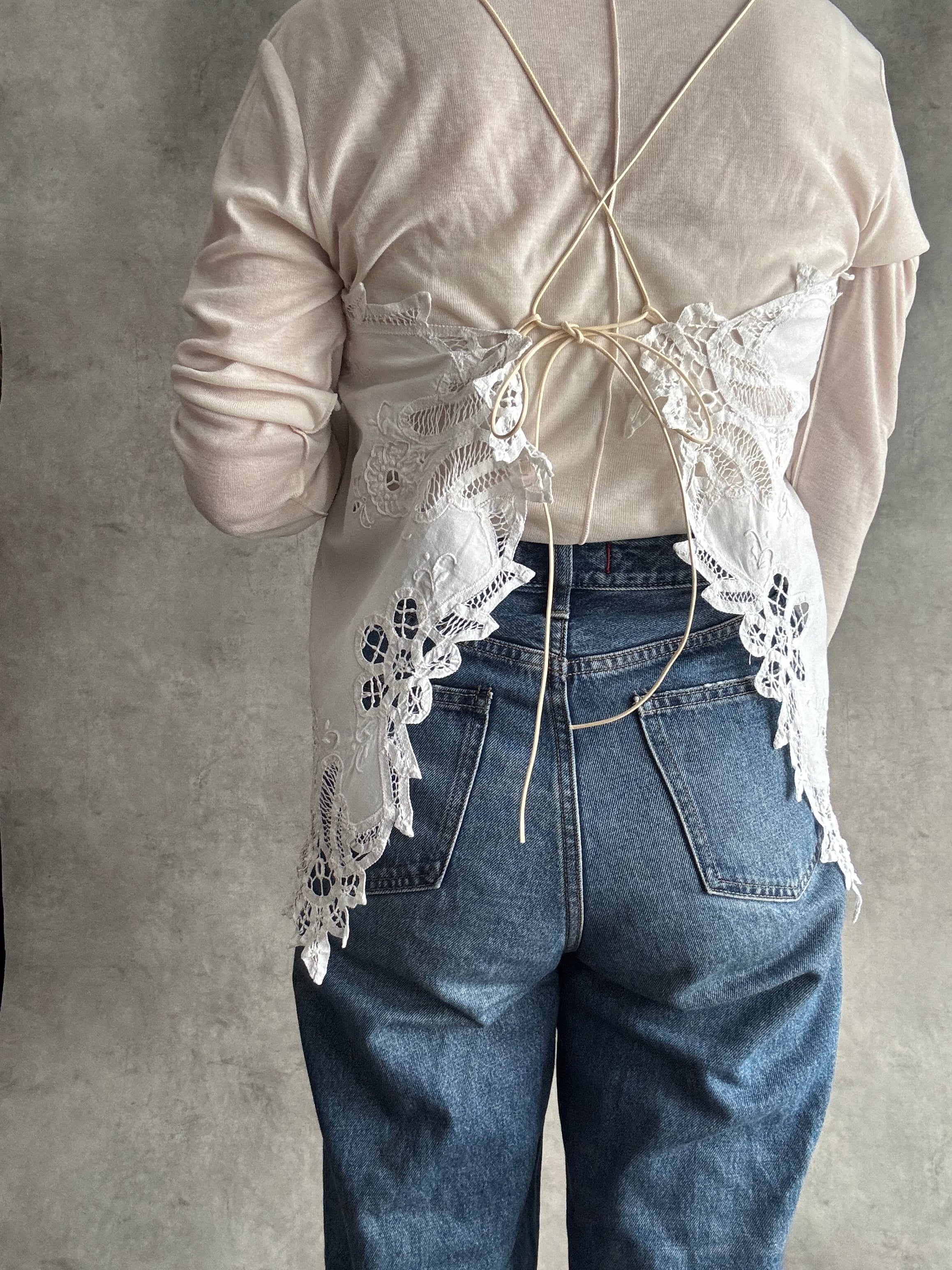 肩紐は後ろでクロスして紐を通して結び、調整できる形になっています。