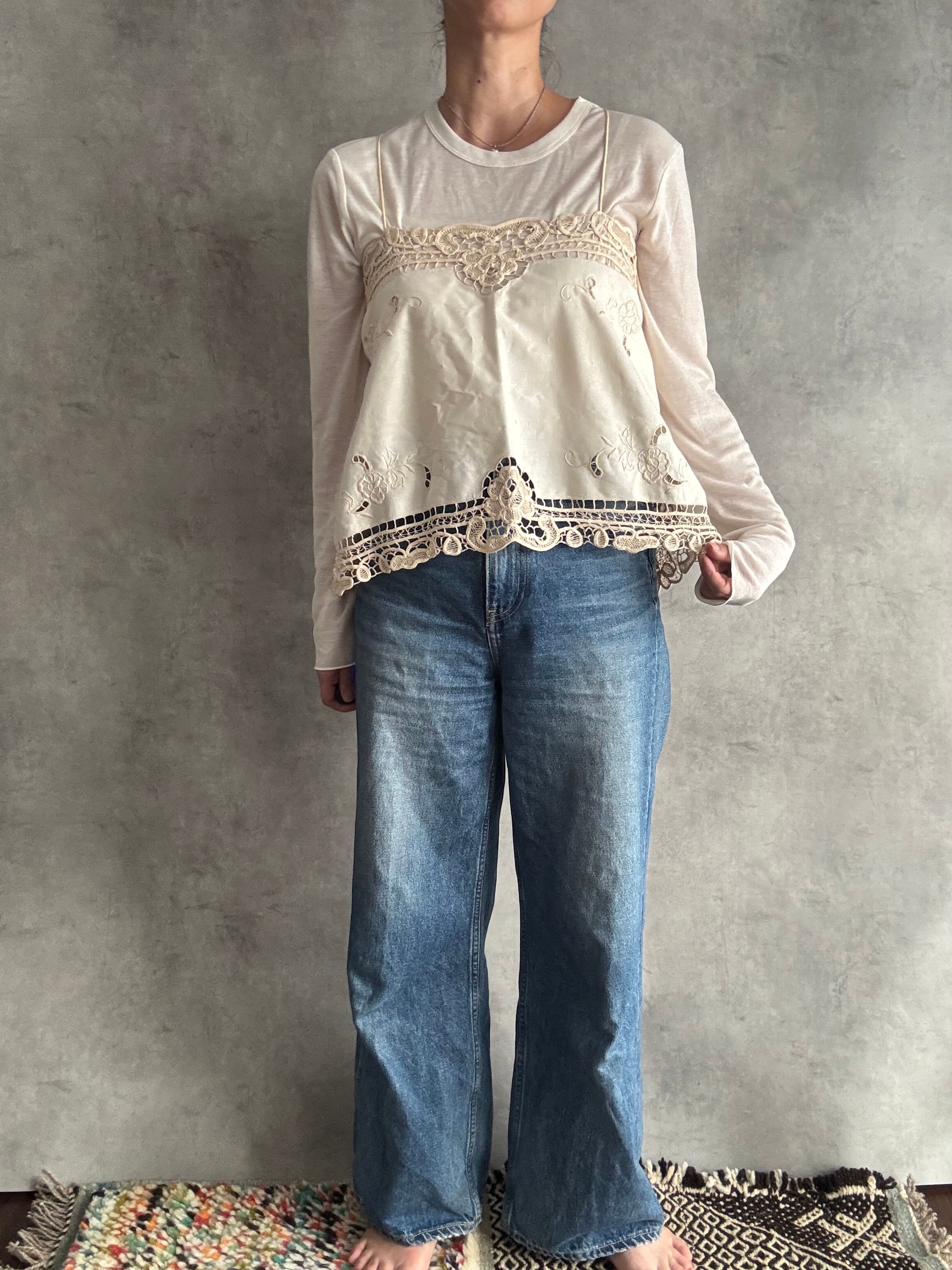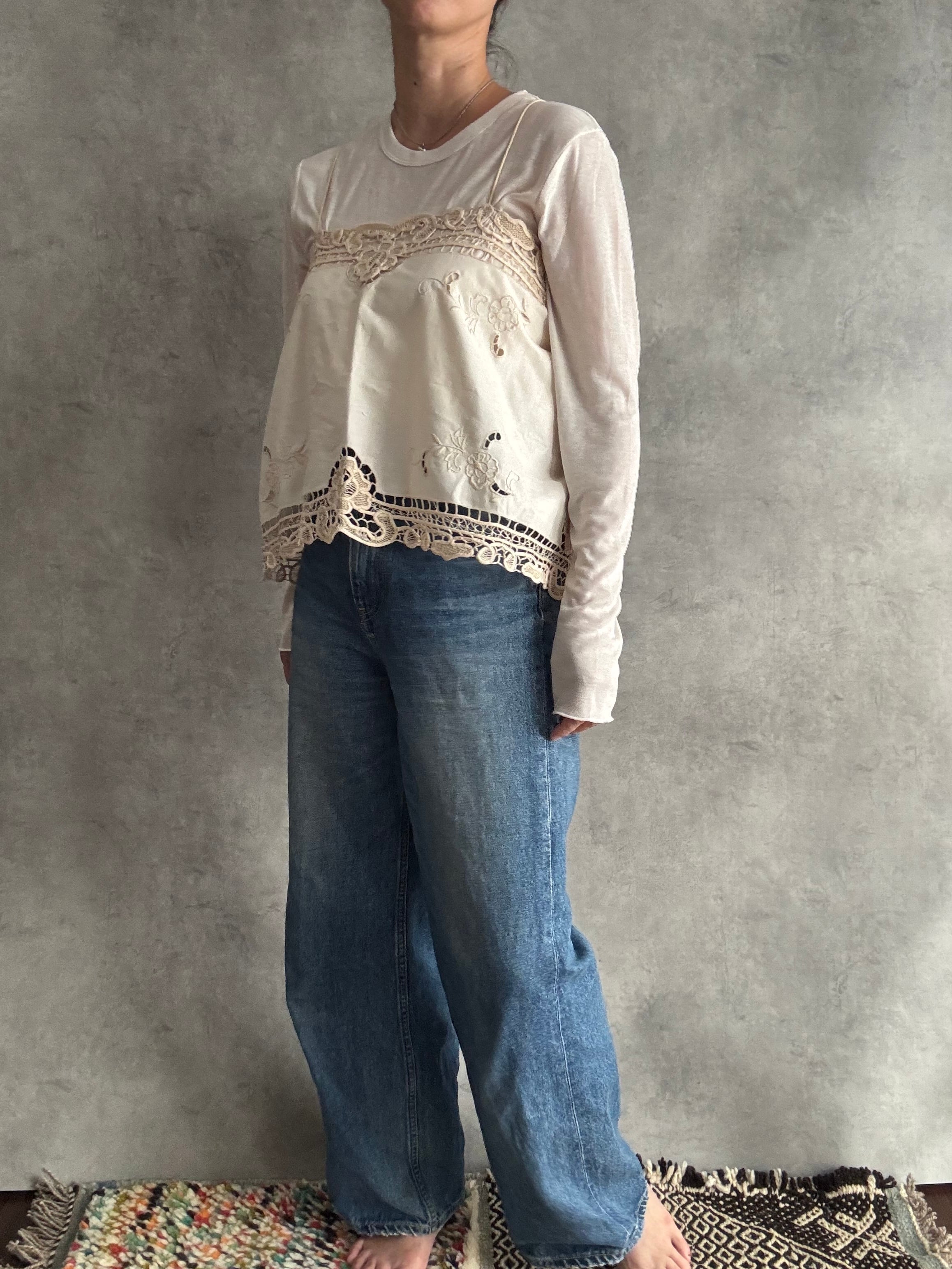アイボリーとベージュの間のような色味がよりヴィンテージっぽい雰囲気を出しています。