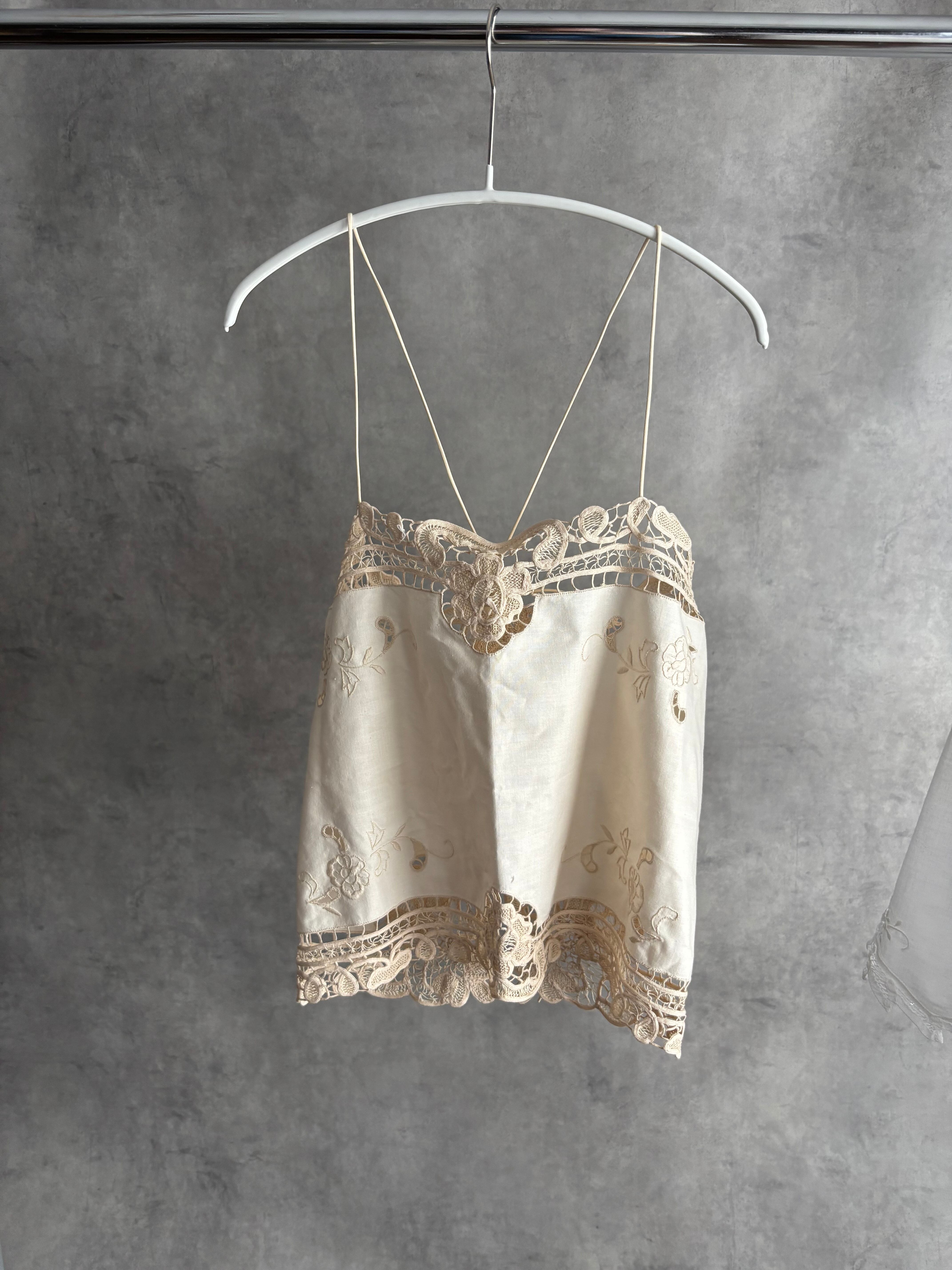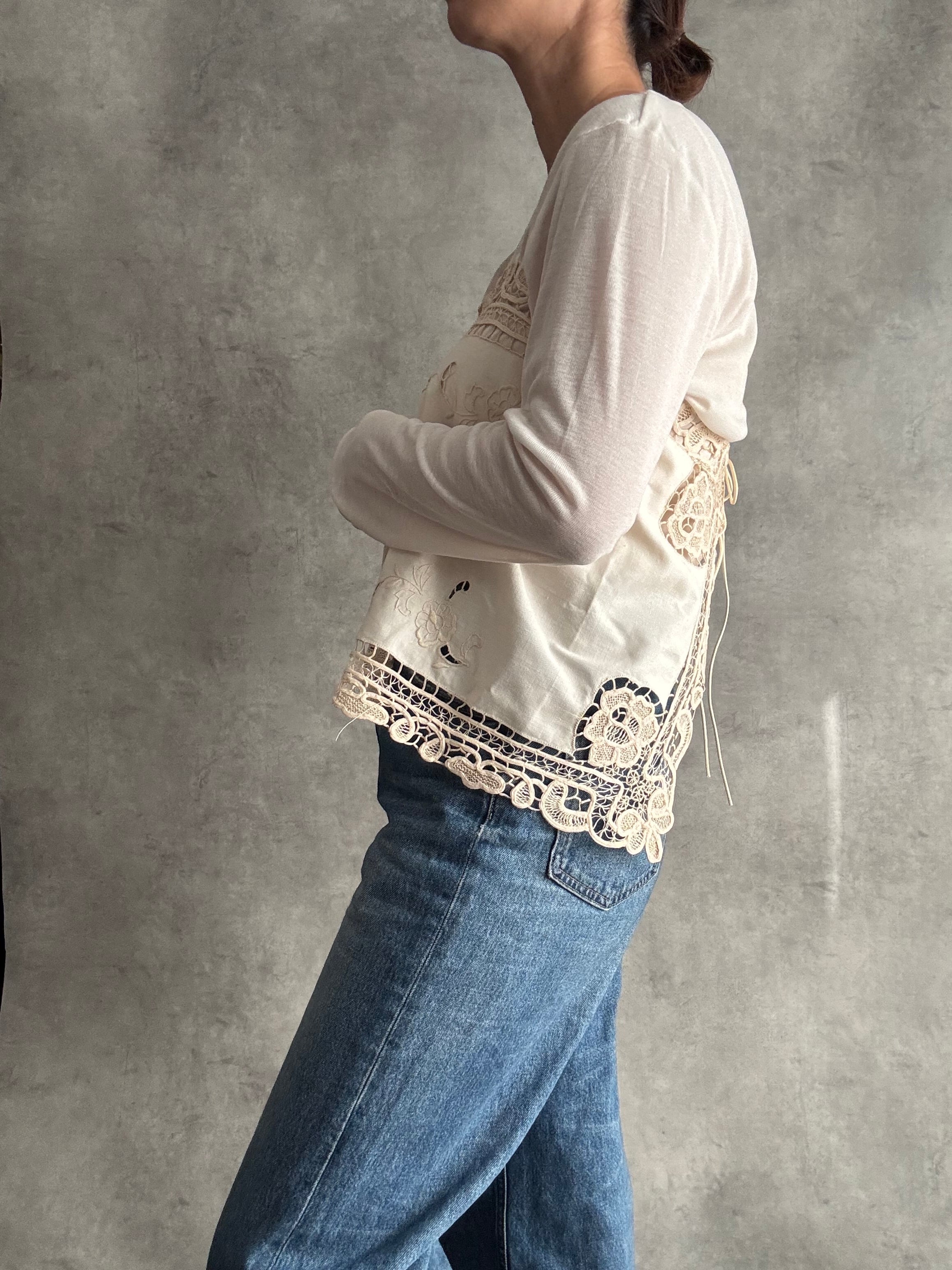 丁寧な刺繍と立体的なコード刺繍が美しいクロス。