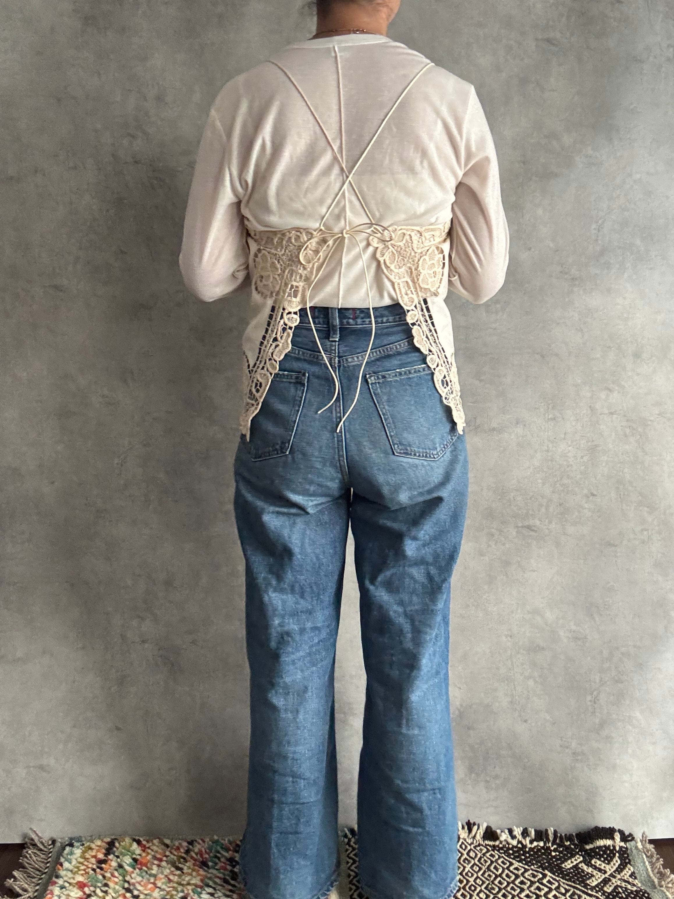 肩紐は後ろでクロスして紐を通して結び、調整できる仕様になっています。
