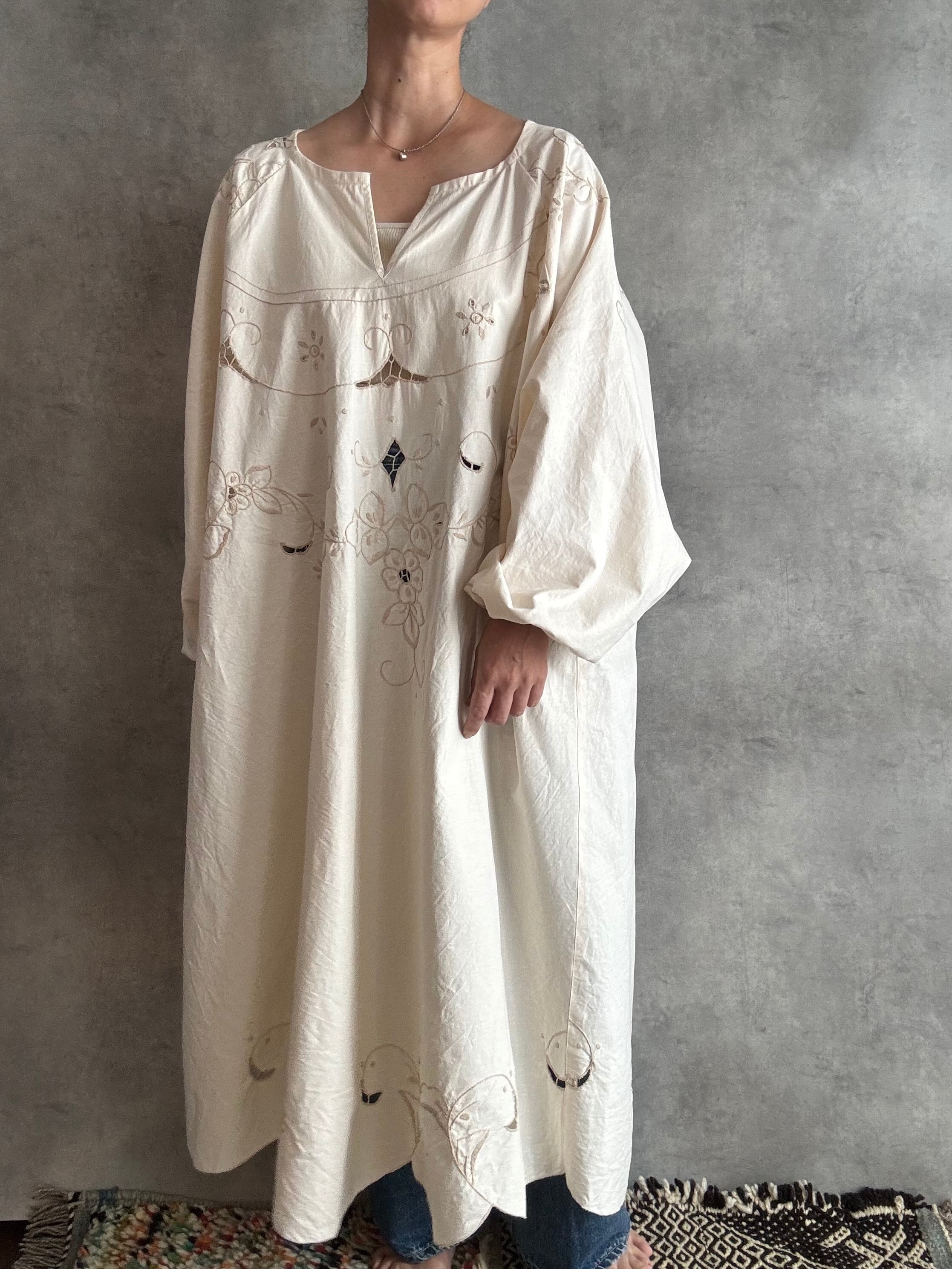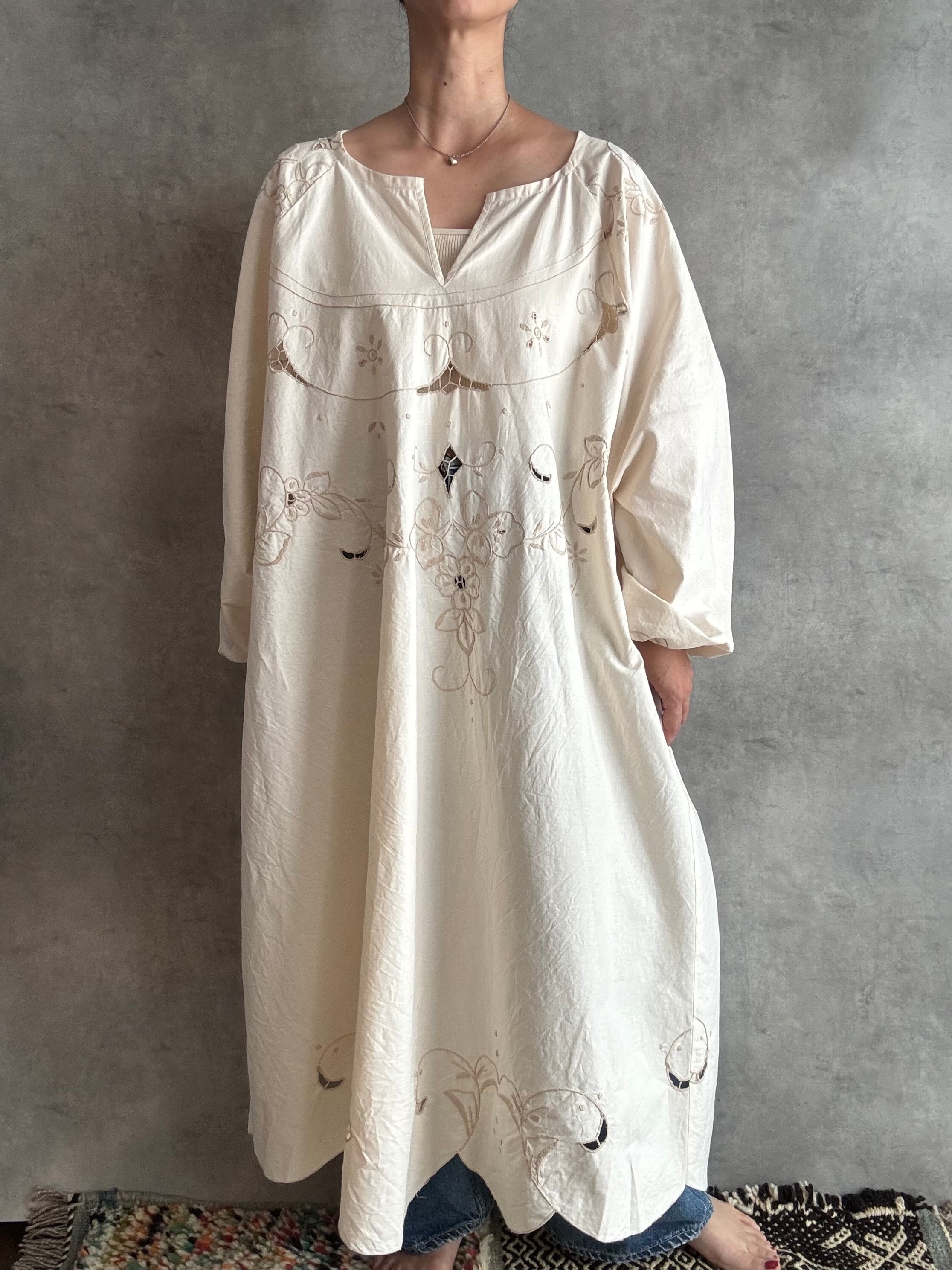 ぽわん袖ワンピース カットワークレース アイボリー
