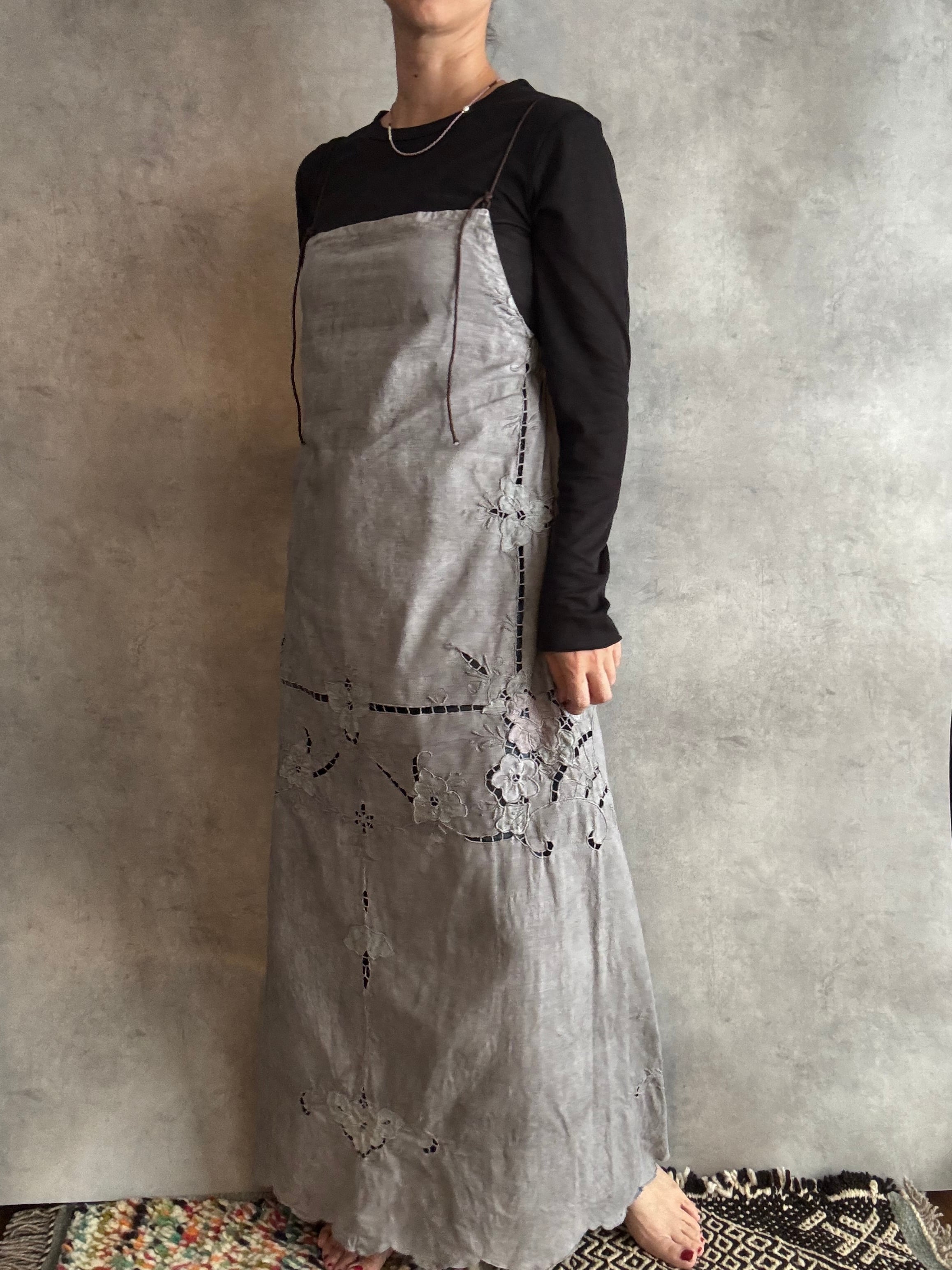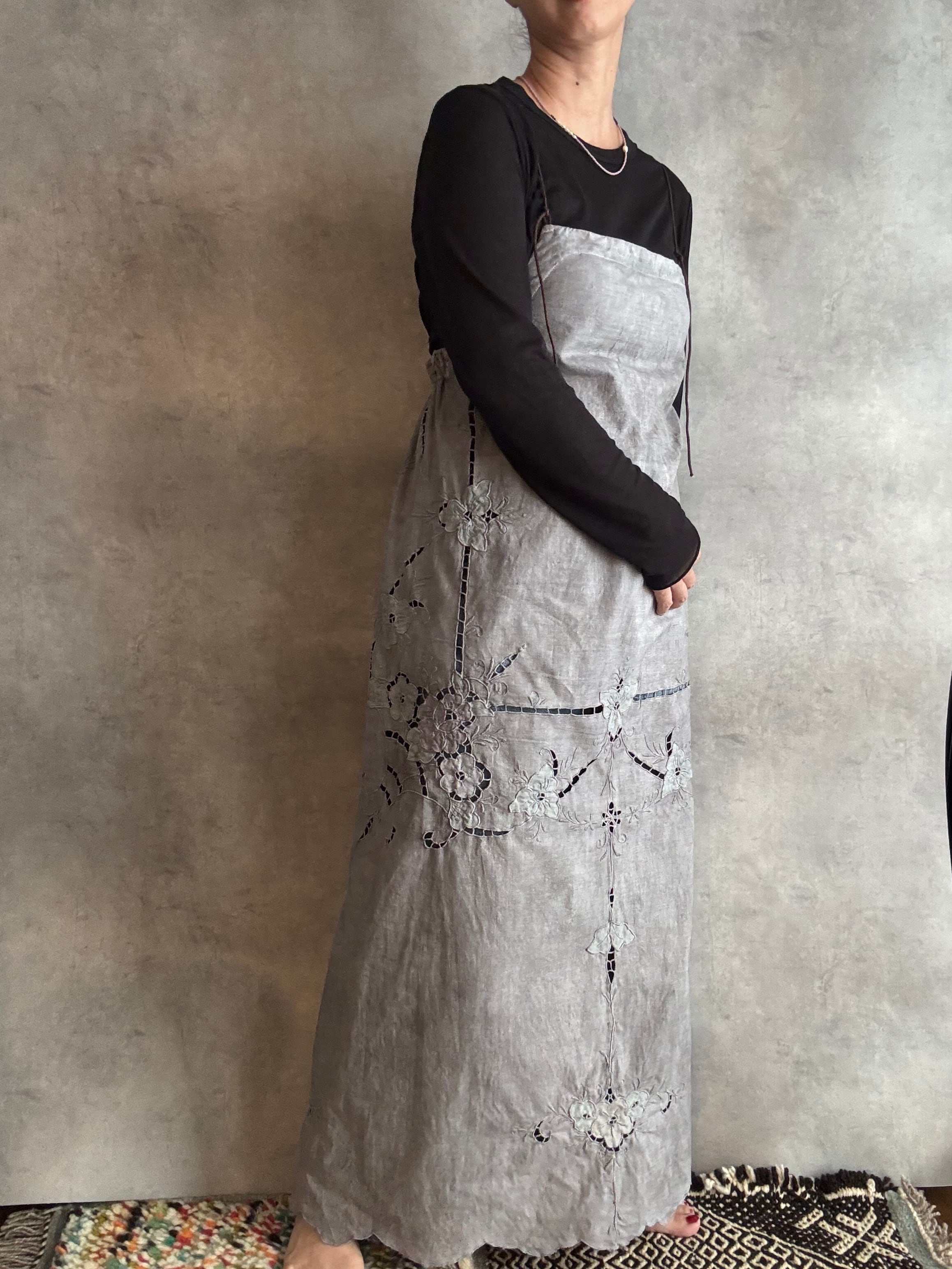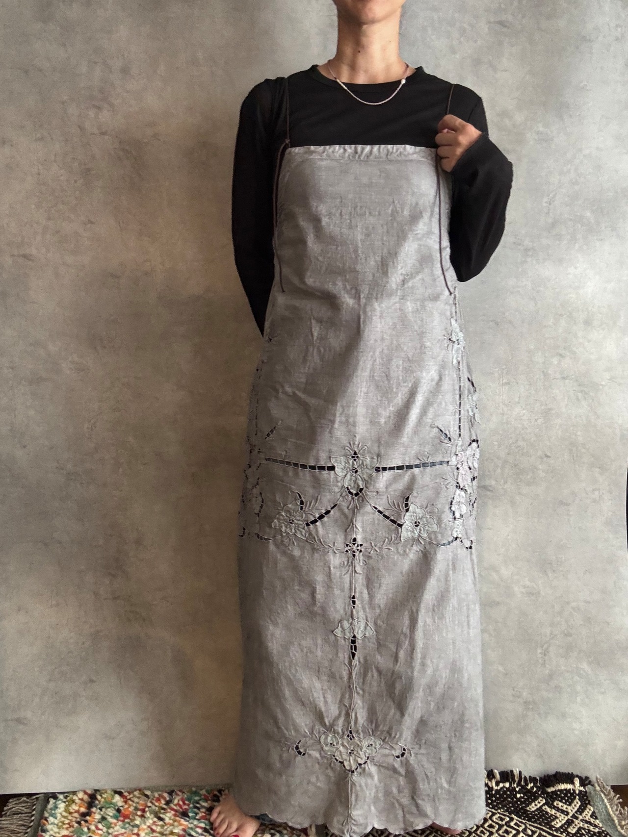こちらもグレーのマデイラ刺繍が施され、スカラップエッジの大きなカットワークレースが特徴です!