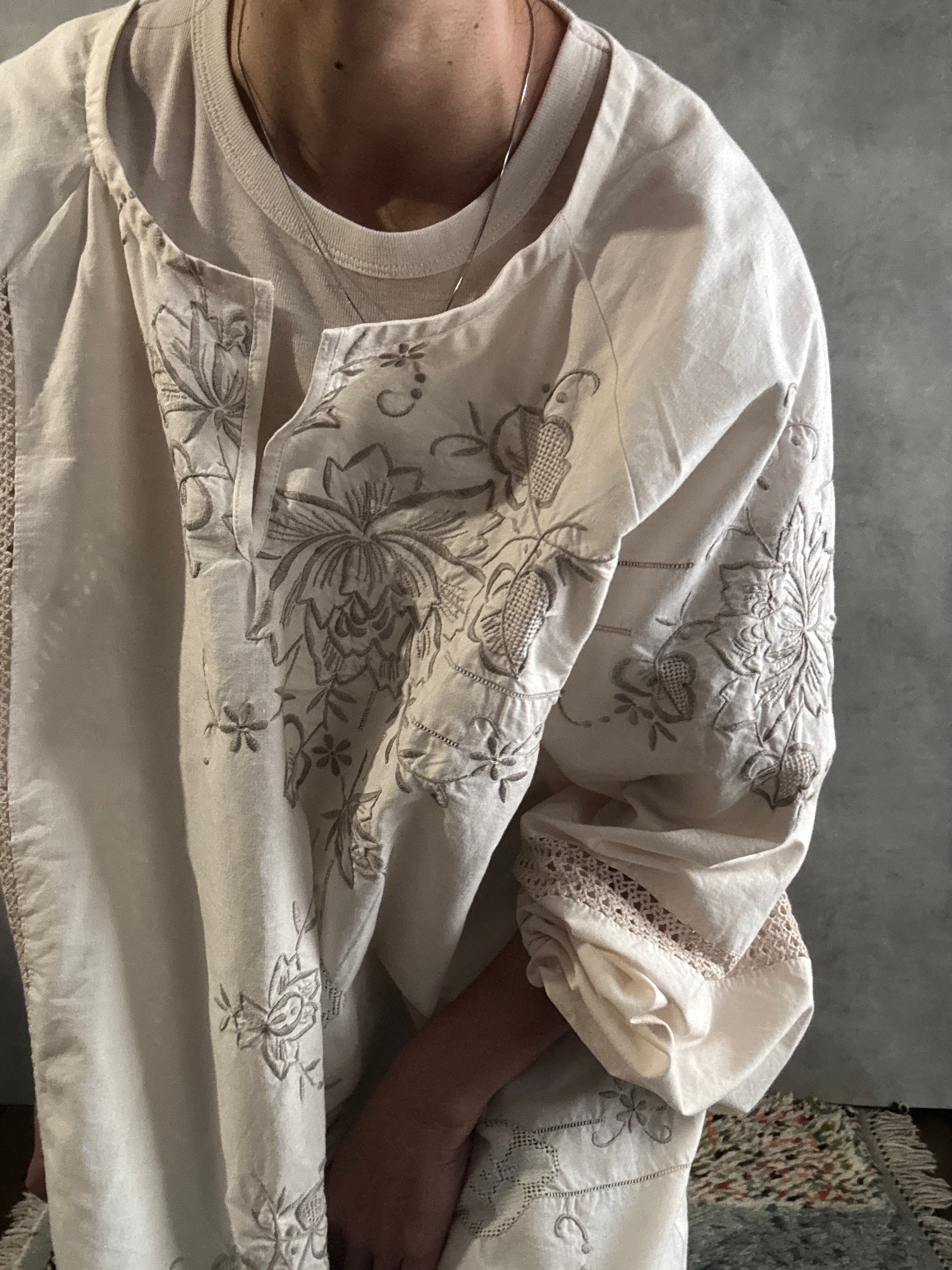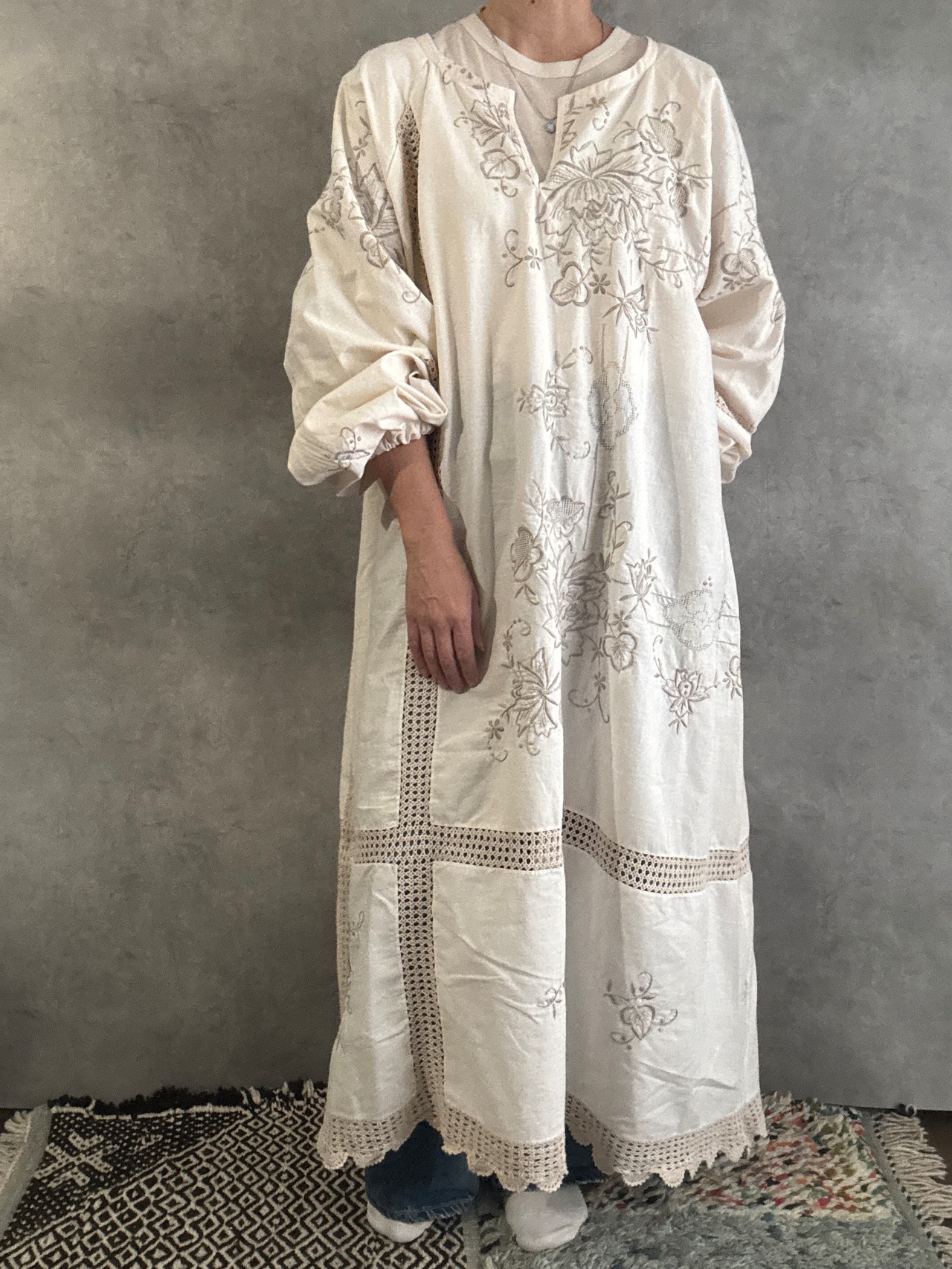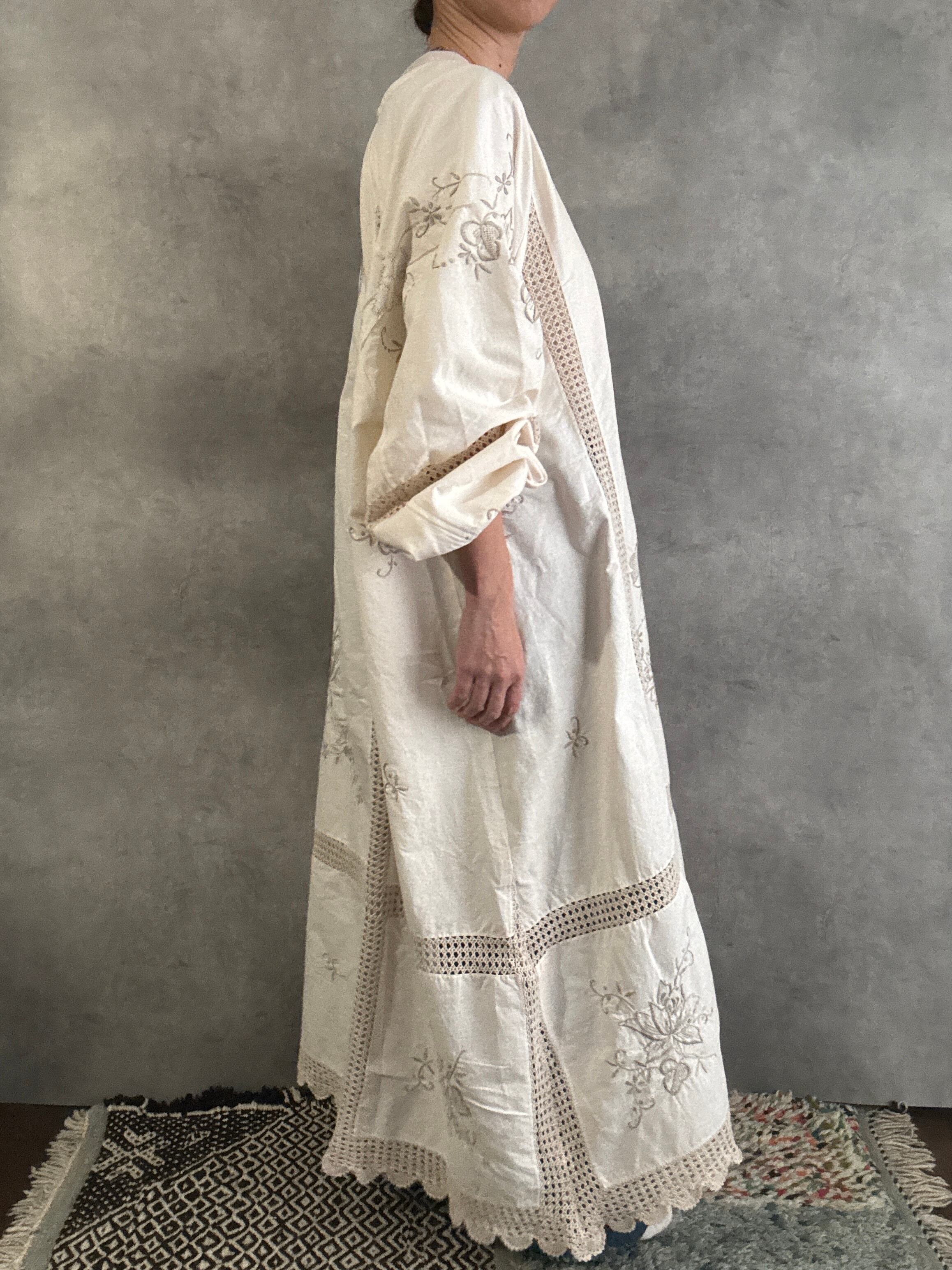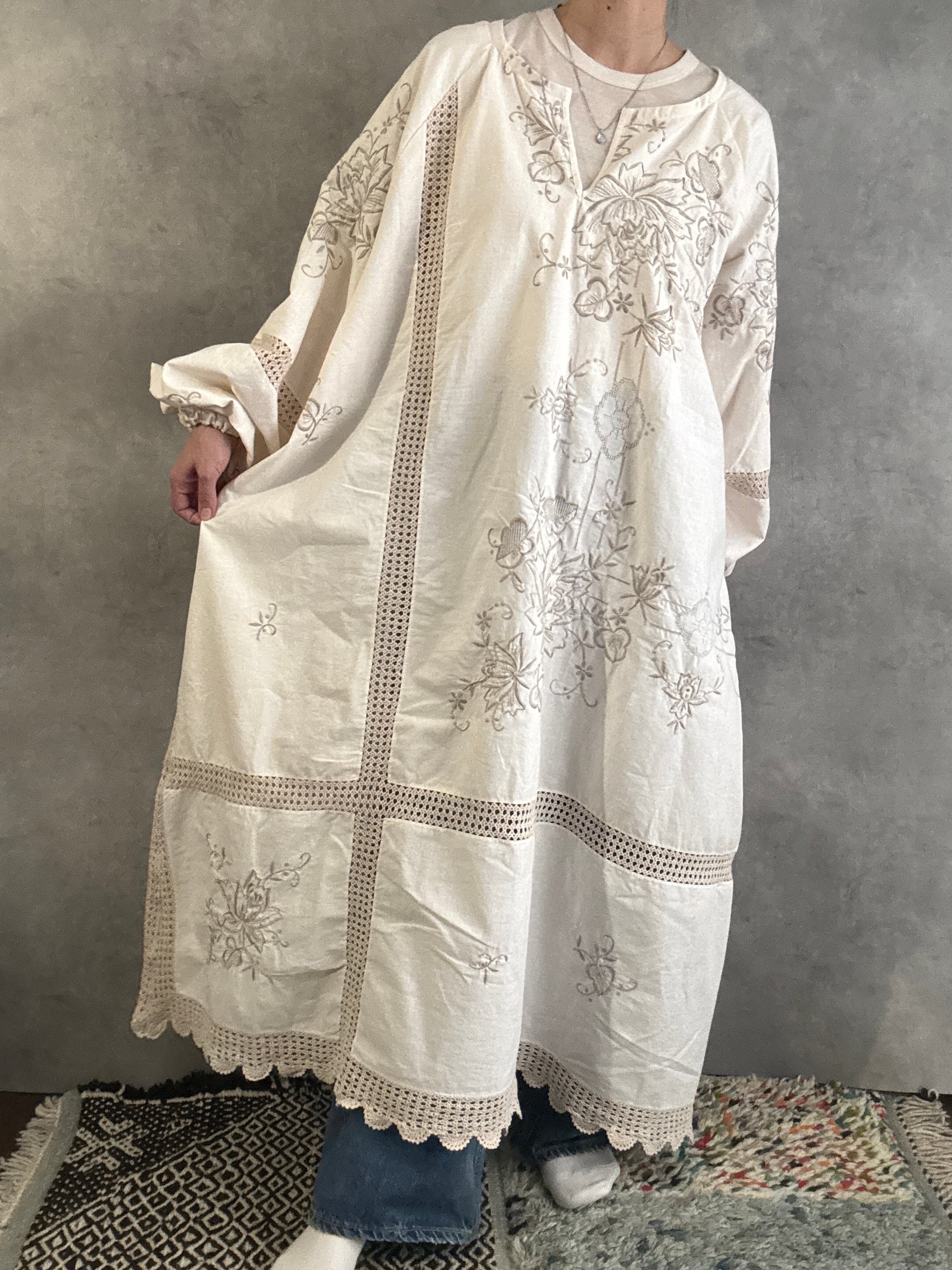 ヴィンテージクロシェレース×刺繍 リメイクワンピース|一点もの 白綴 shirotsuduri
