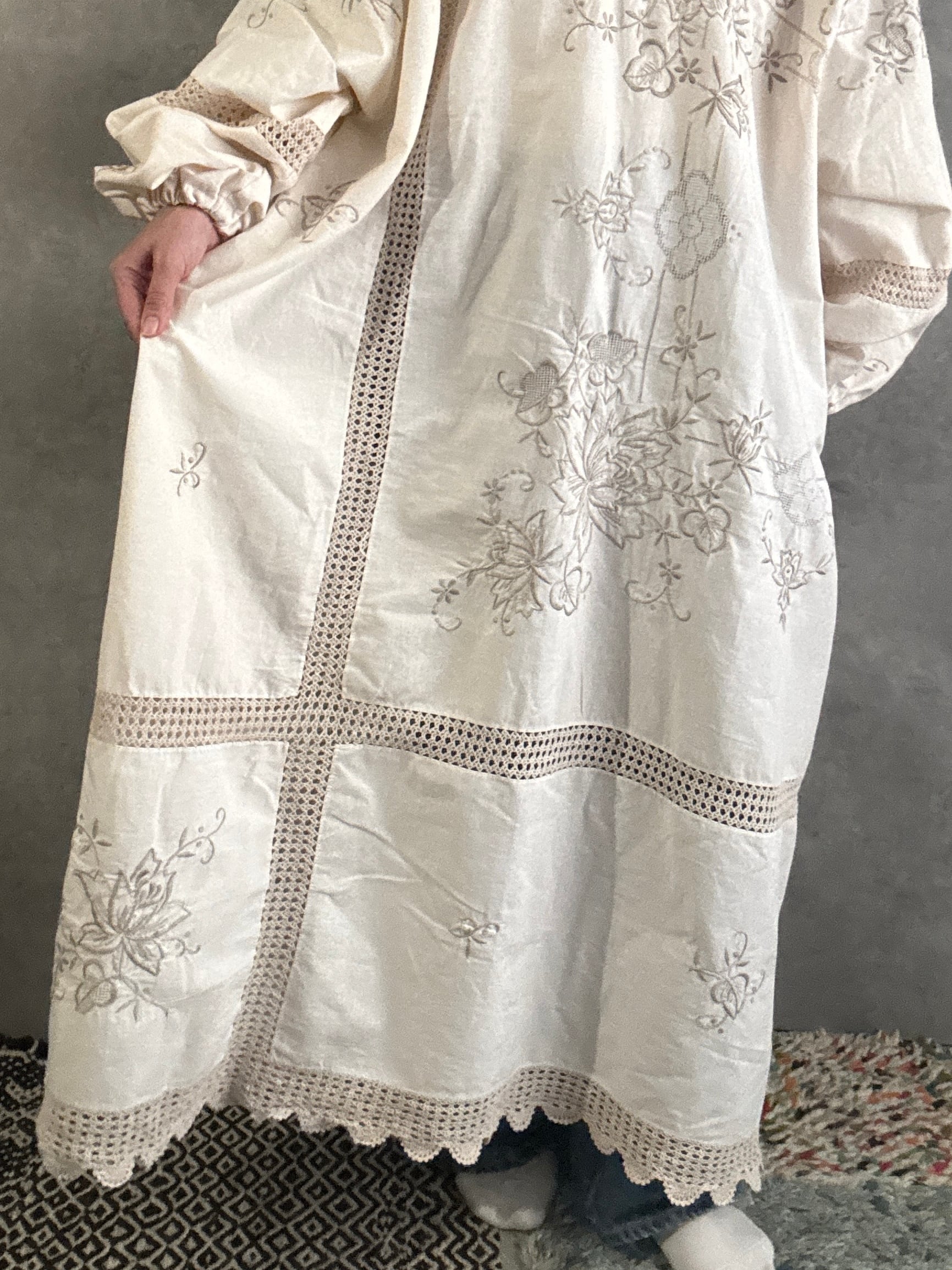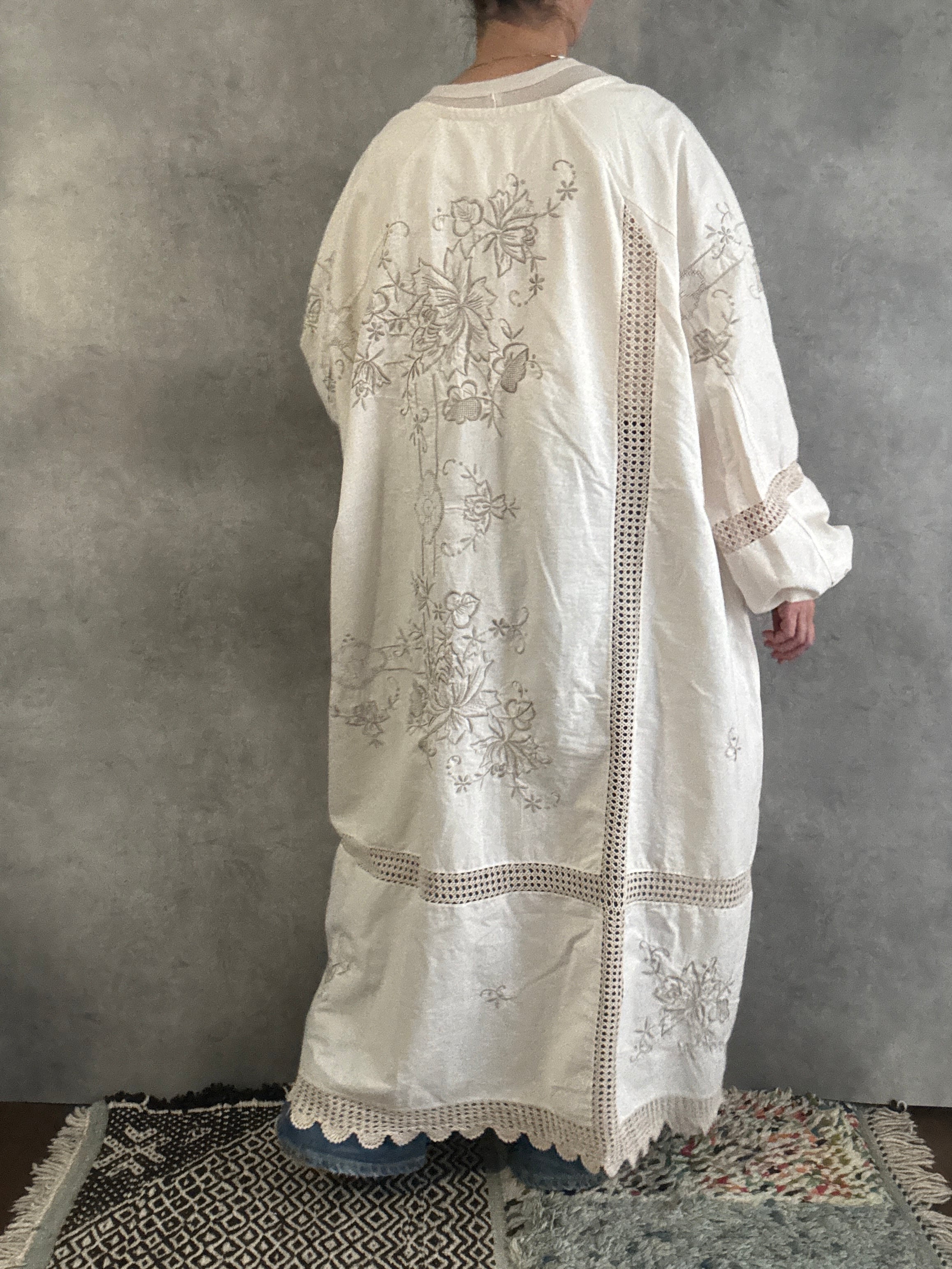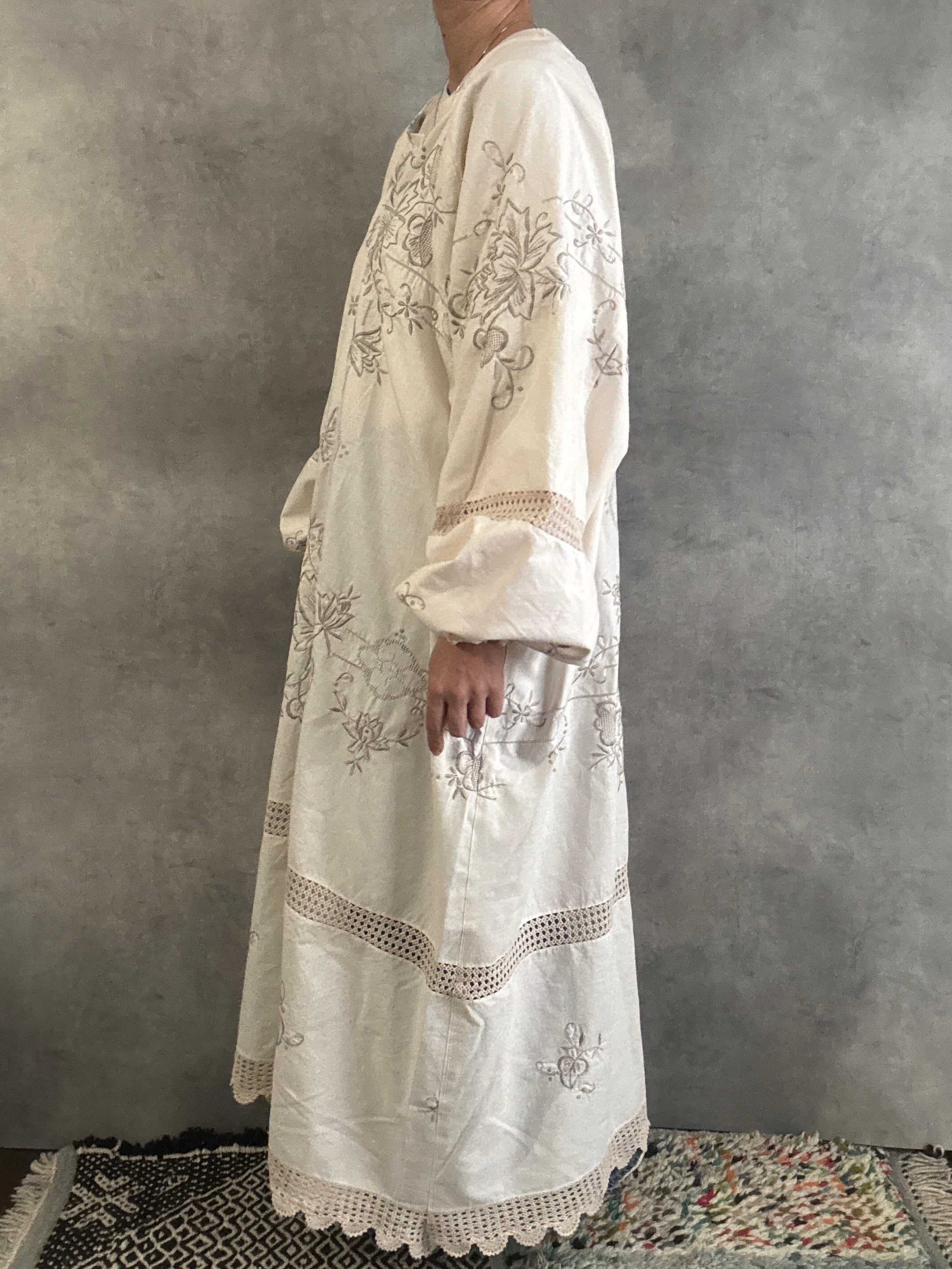 ヴィンテージクロシェレース×刺繍 リメイクワンピース|一点もの 白綴 shirotsuduri
