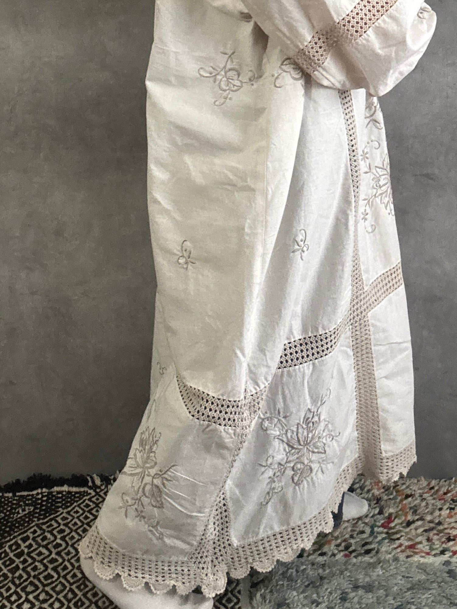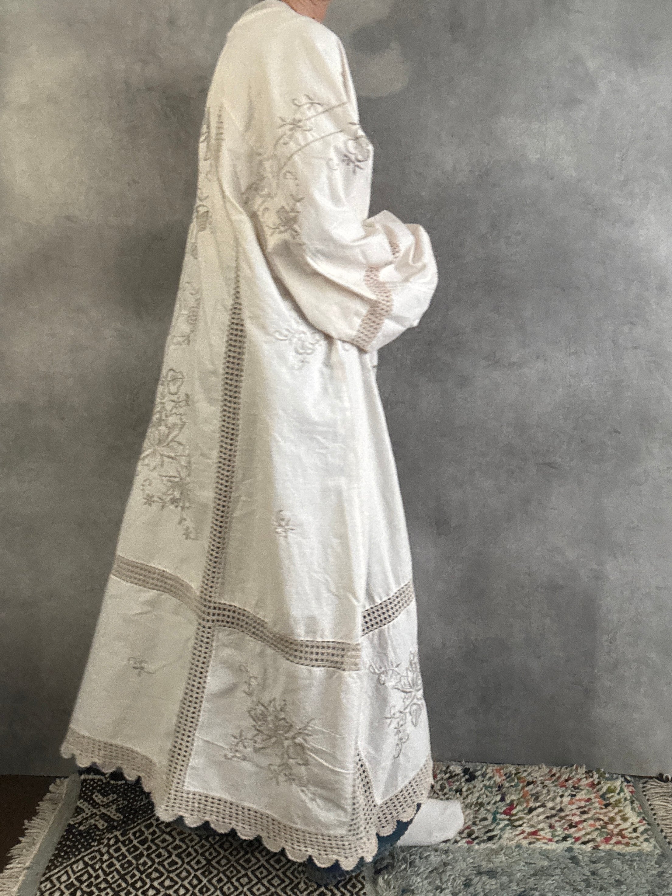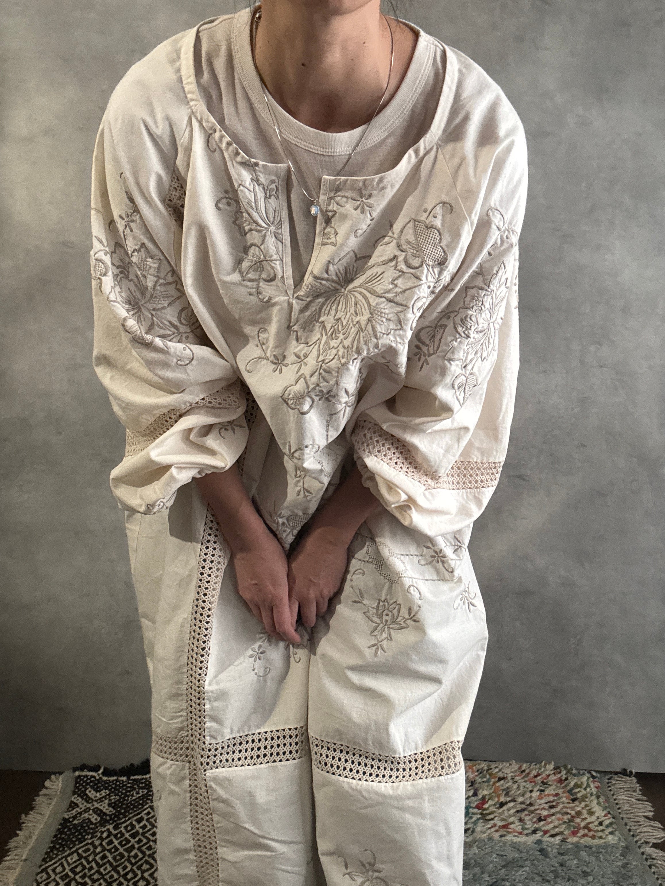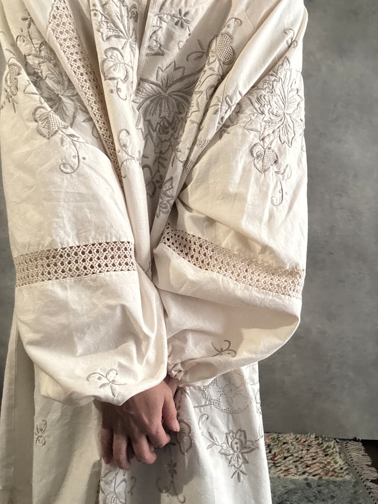 ヴィンテージクロシェレース×刺繍 リメイクワンピース|一点もの 白綴 shirotsuduri
