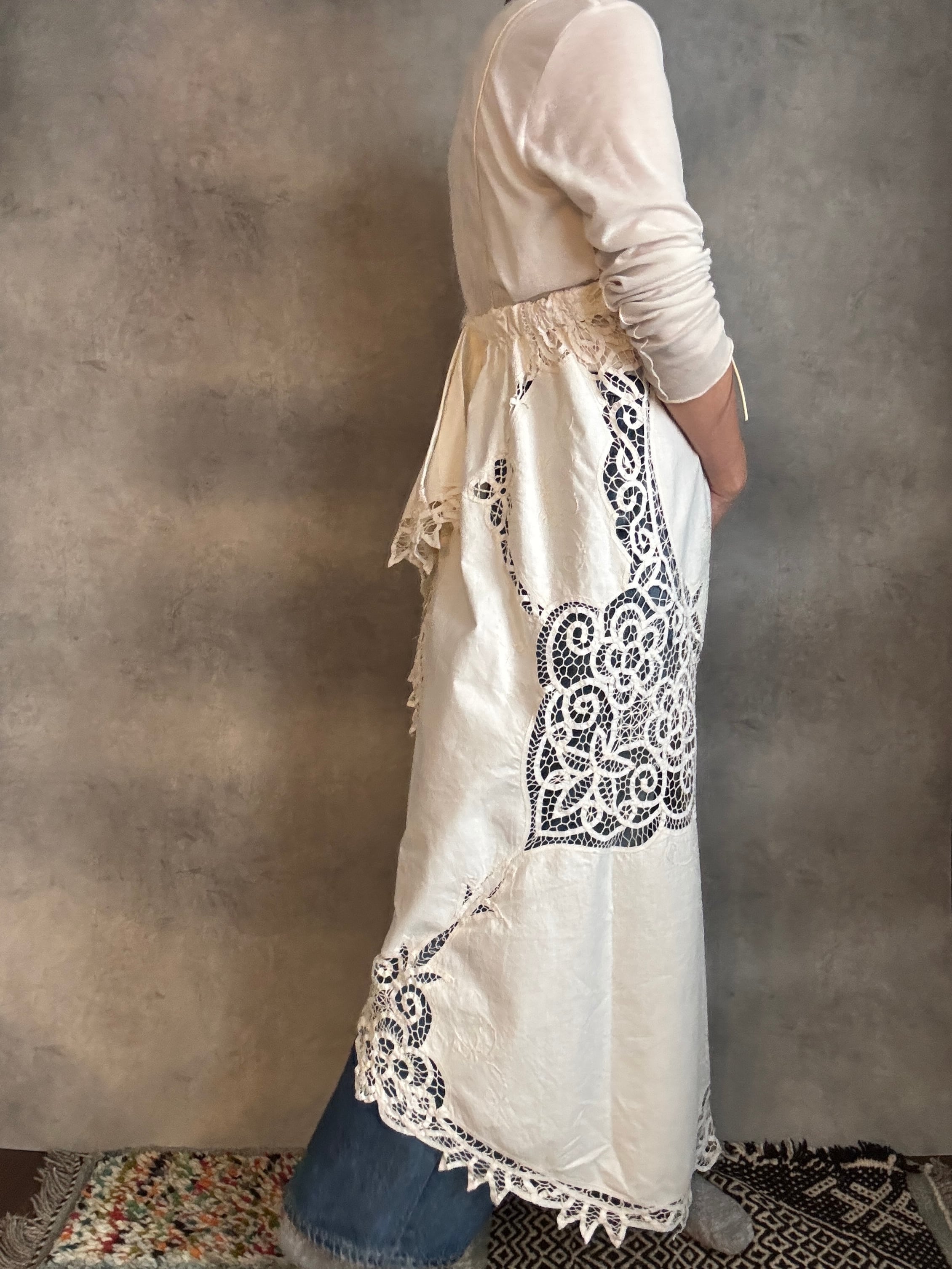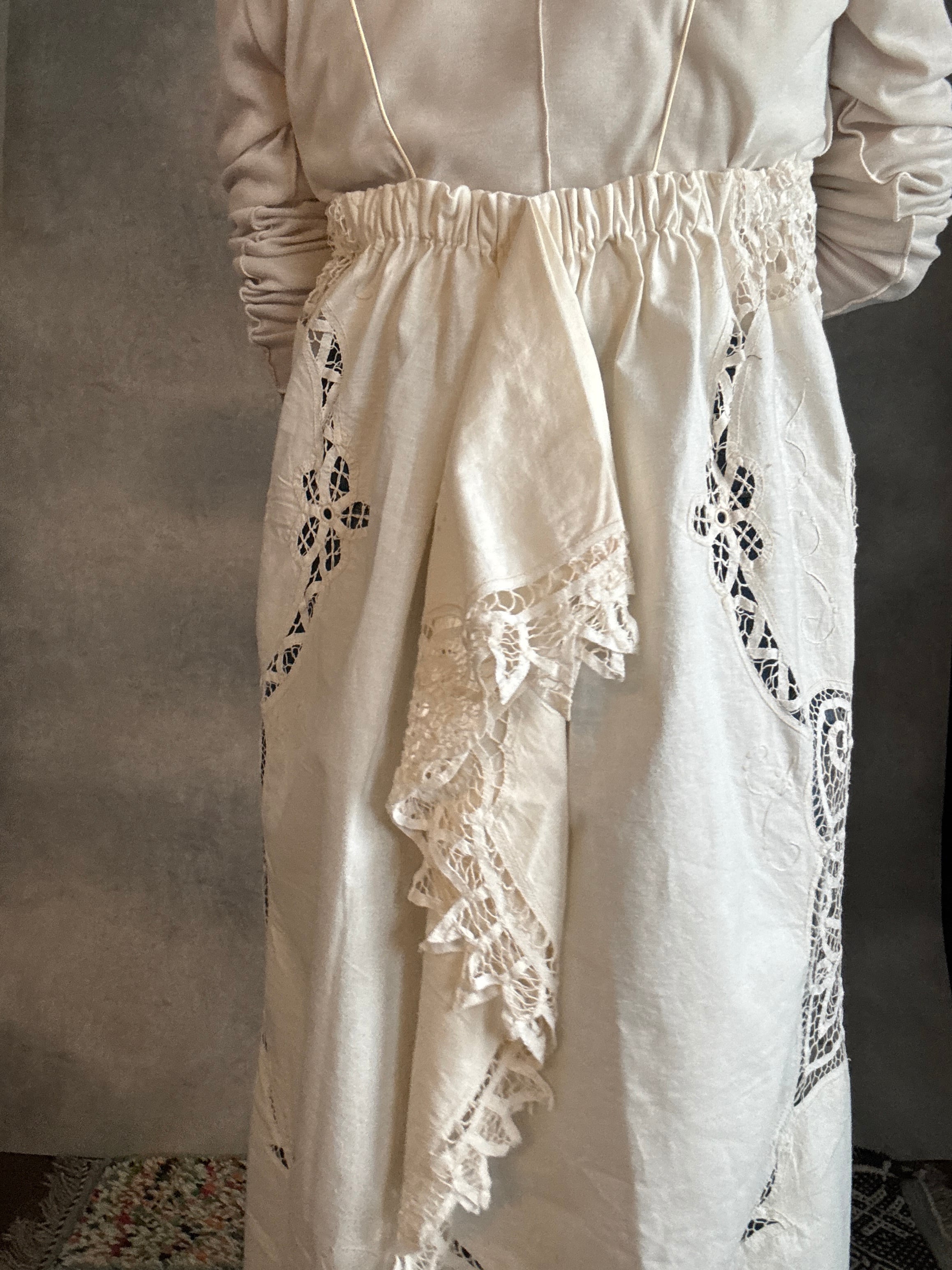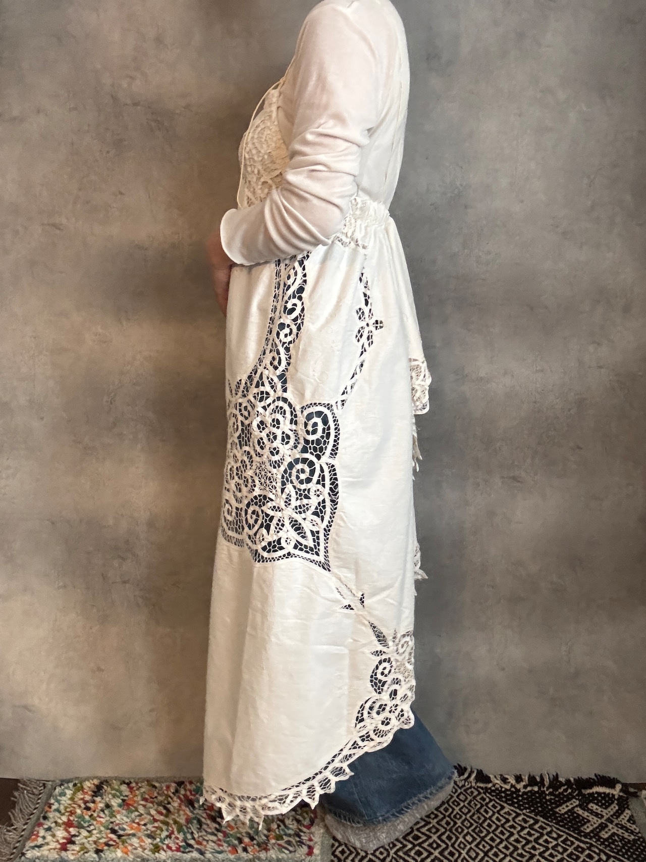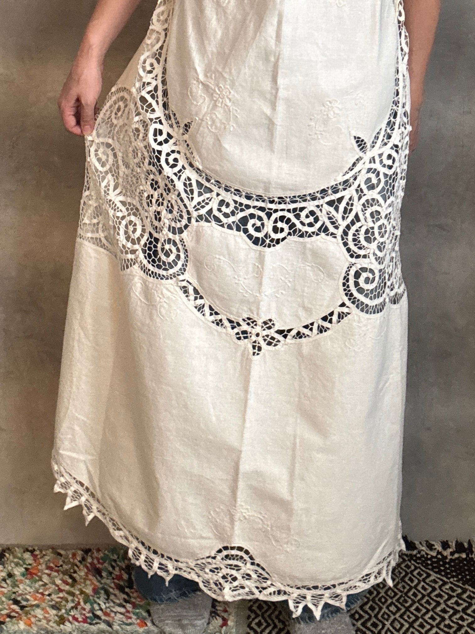 素材:おそらくヴィンテージコットンまたはコットンリネン(クロシェレース、刺繍入り)