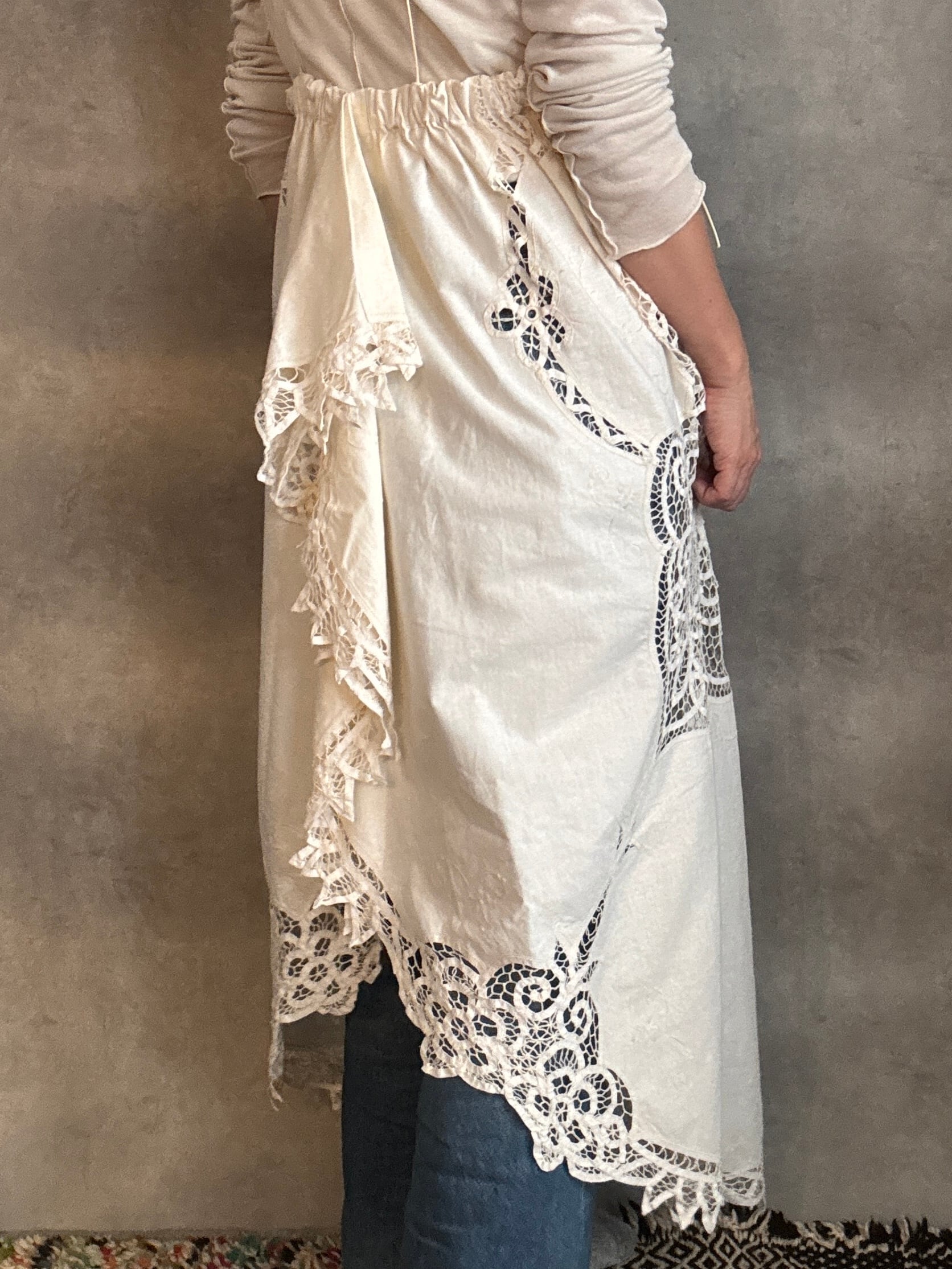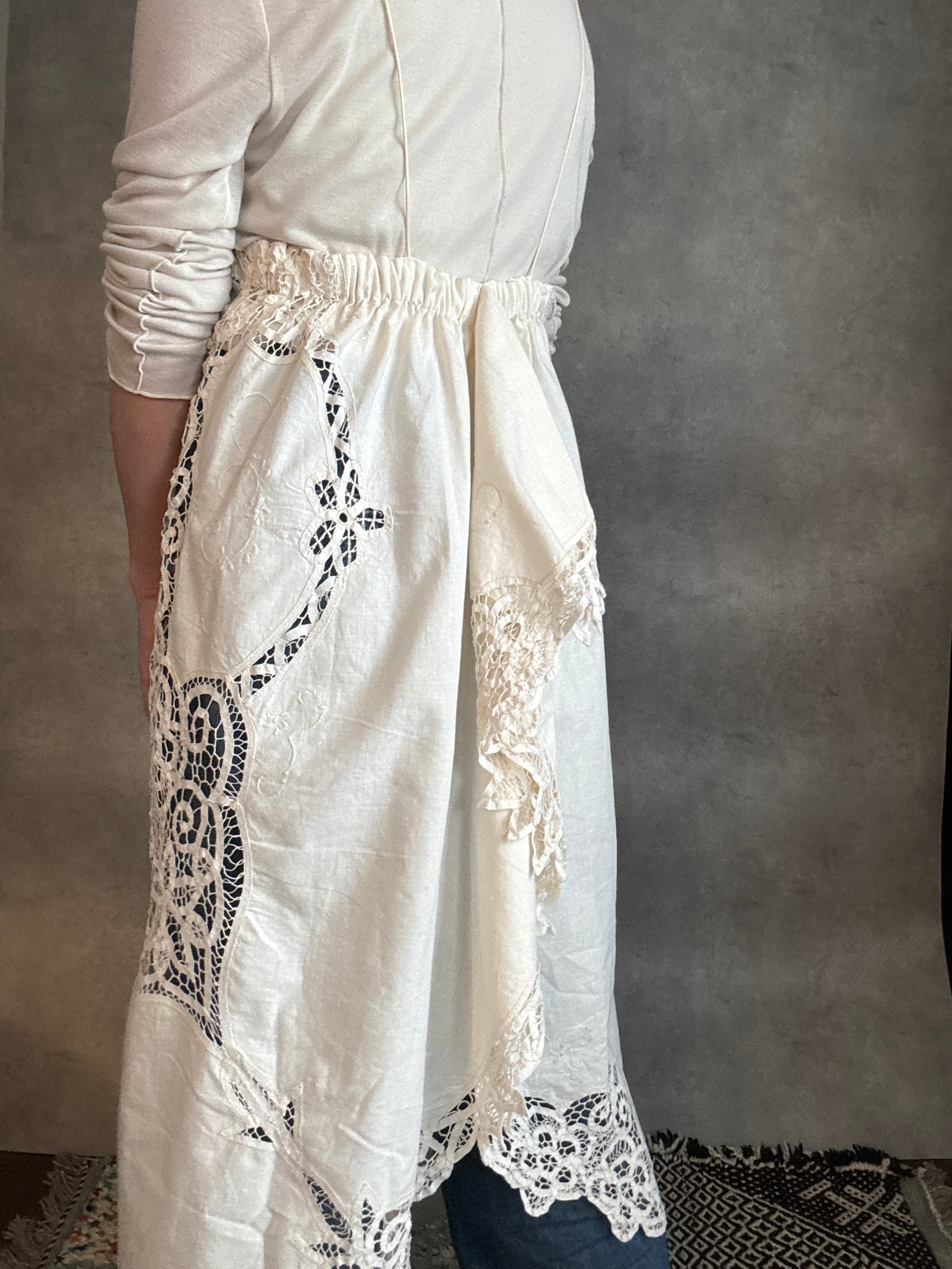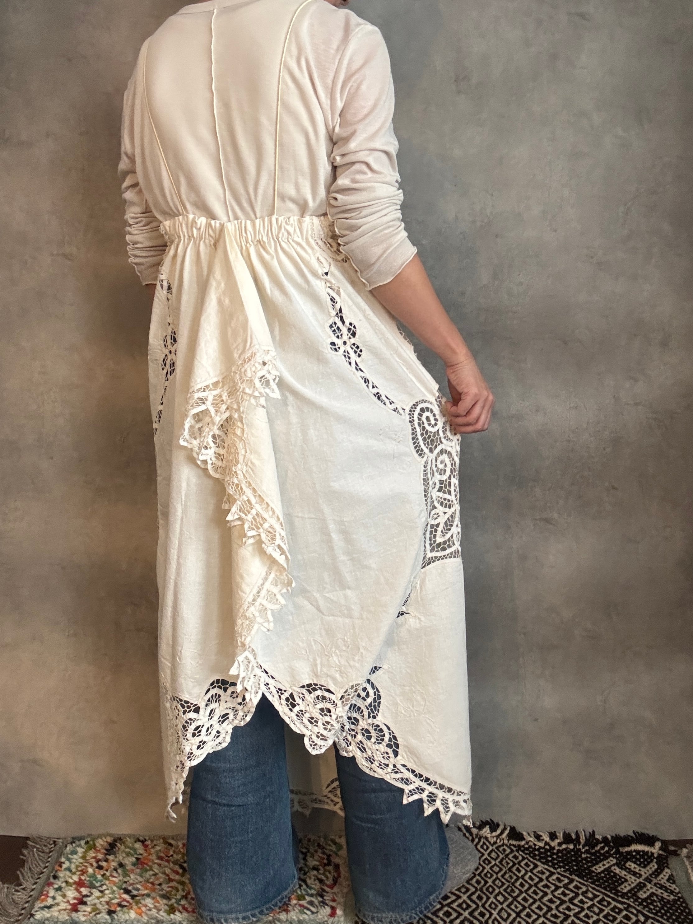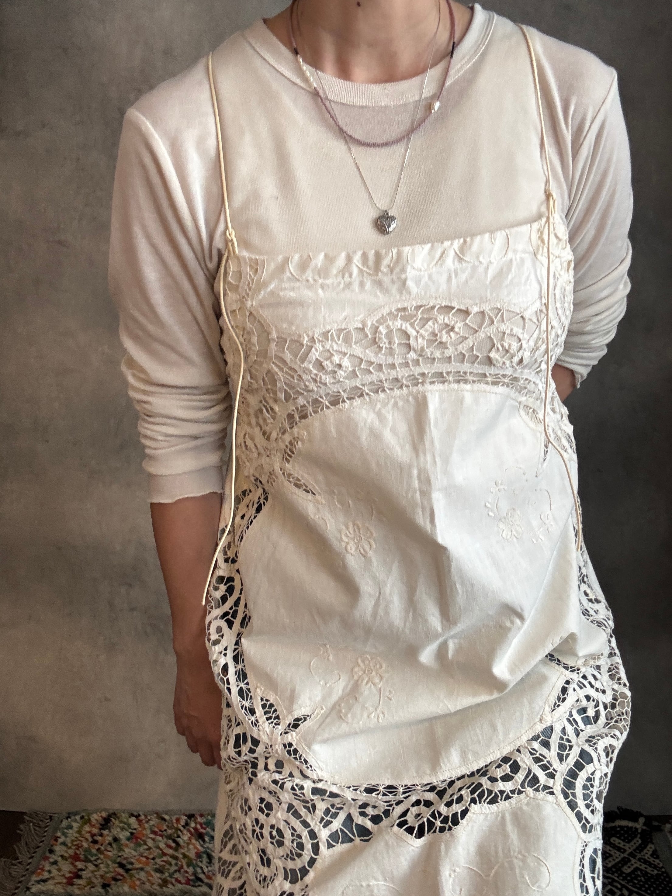 素材:おそらくヴィンテージコットンまたはコットンリネン(クロシェレース、刺繍入り)