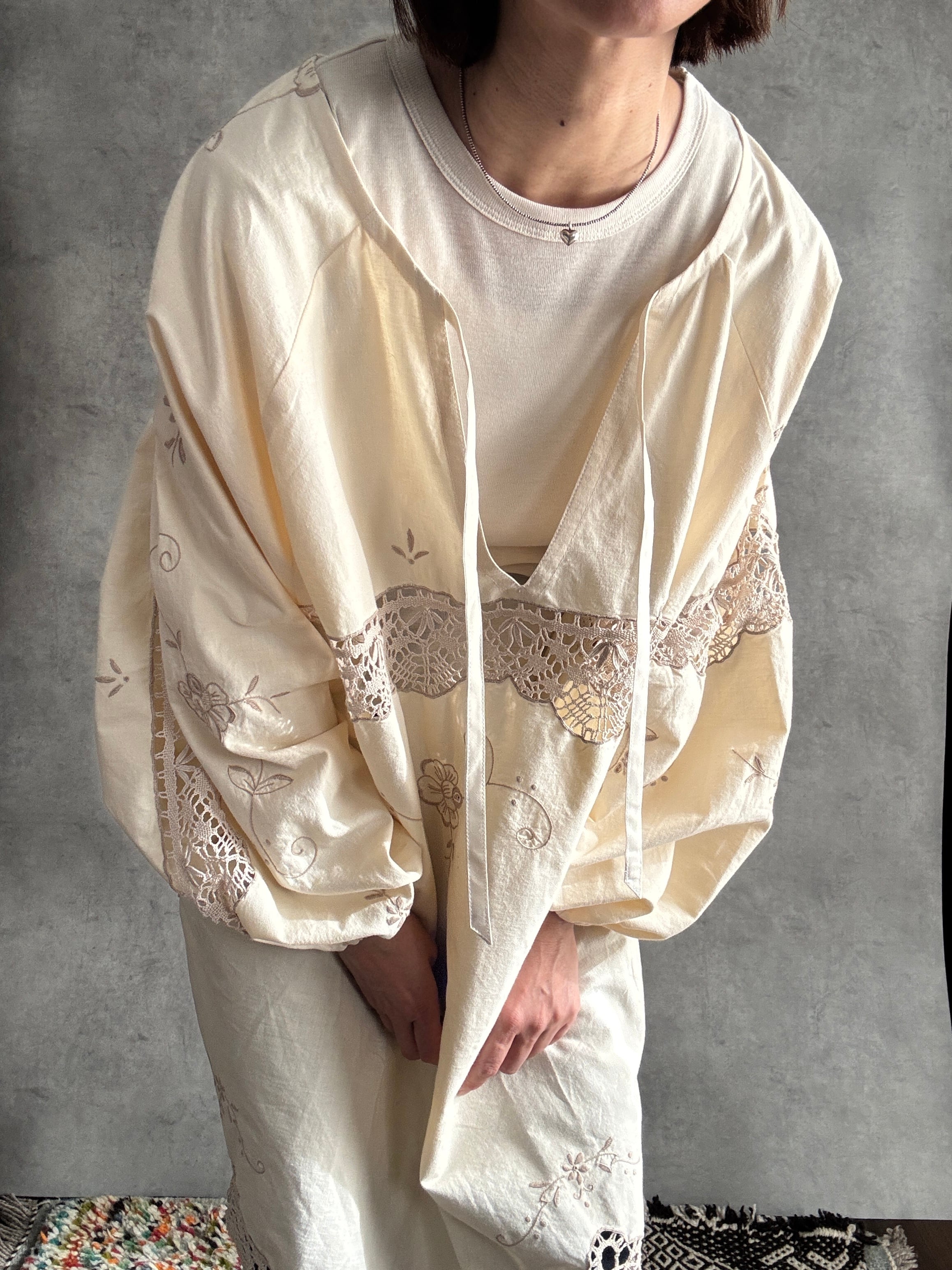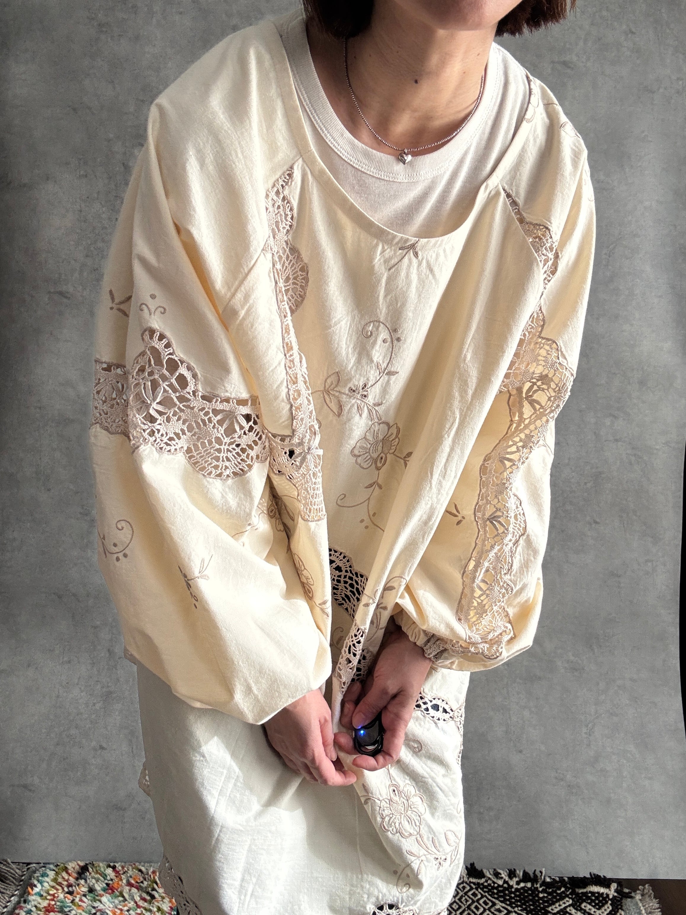 淡花 awahana ヴィンテージクロシェレース2way ブラウス|一点もの