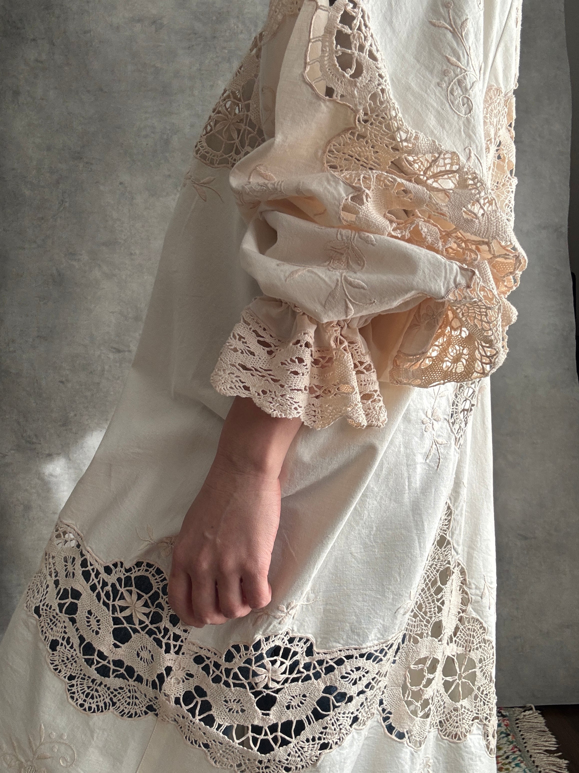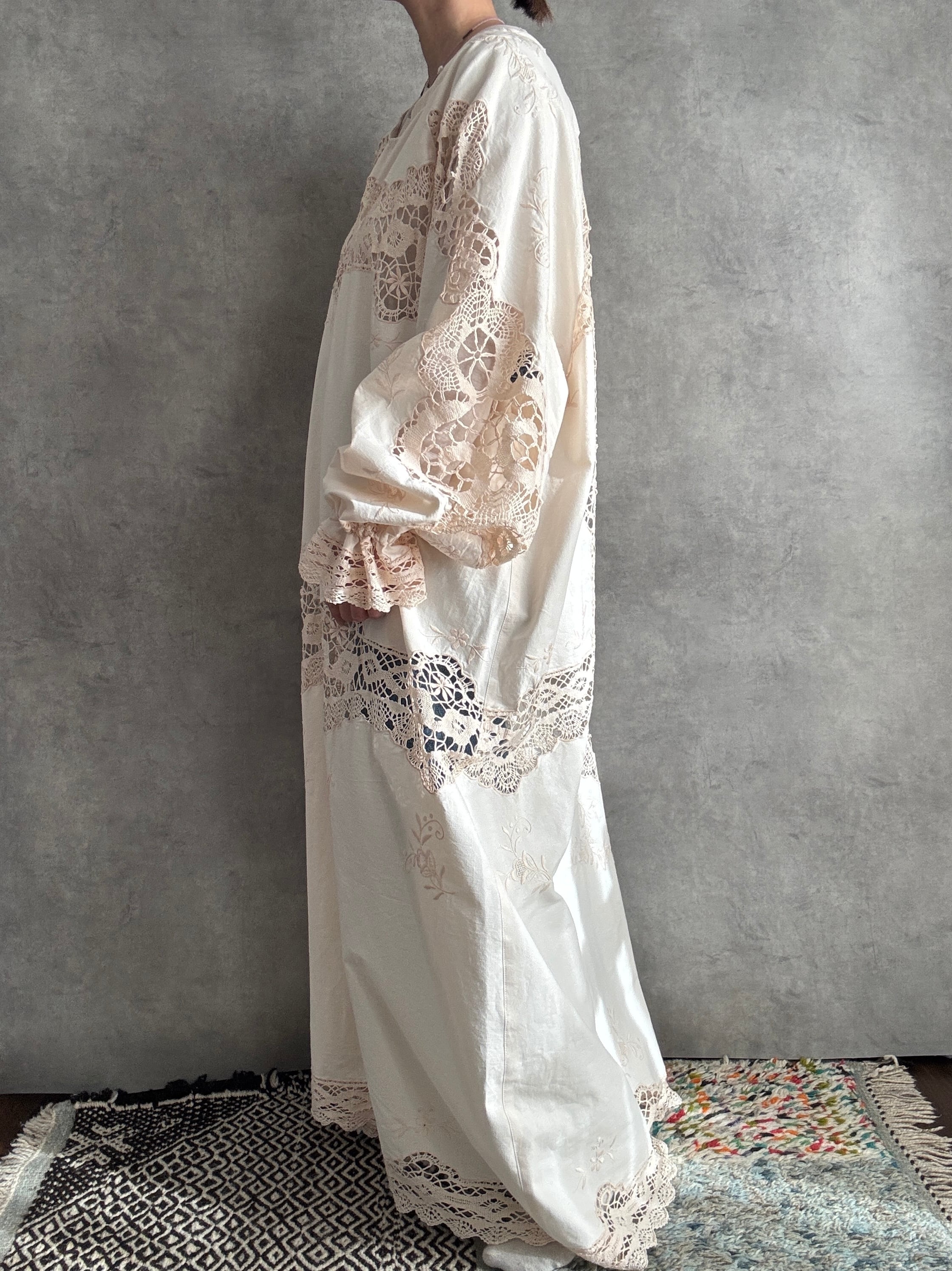 淡雫 awashizuku ヴィンテージクロシェレース×刺繍 リメイクワンピース|一点もの
